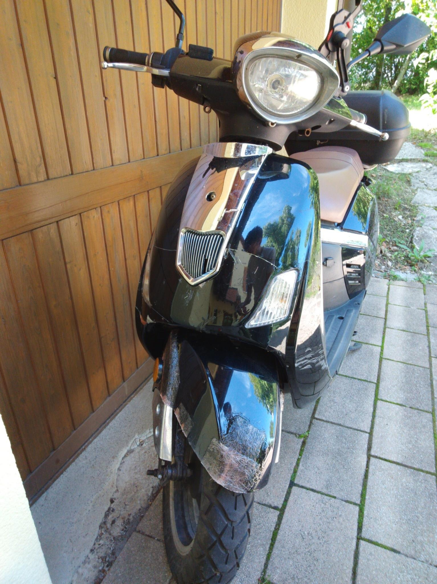 Also erstmal Roller am naechsten Tag abgemeldet (THG gibt es ab naechstem Jahr ja nicht mehr und fuer dieses Jahr habe ich Praemie schon) und untergestellt. Dann bei Trinity angefragt, sie haben sich nach ein paar Tagen gemeldet und hätten sogar noch Kotflügel für das 6 Jahre alte Modell vorrätig gehabt, aber leider keine Frontverkleidung. Sie haben mir aber den Tipp gegeben nach folgenden (Verbrenner-)Modellen zu suchen, die wohl die gleiche Verkleidung hätten. Dafür muss ich Trinity mal loben