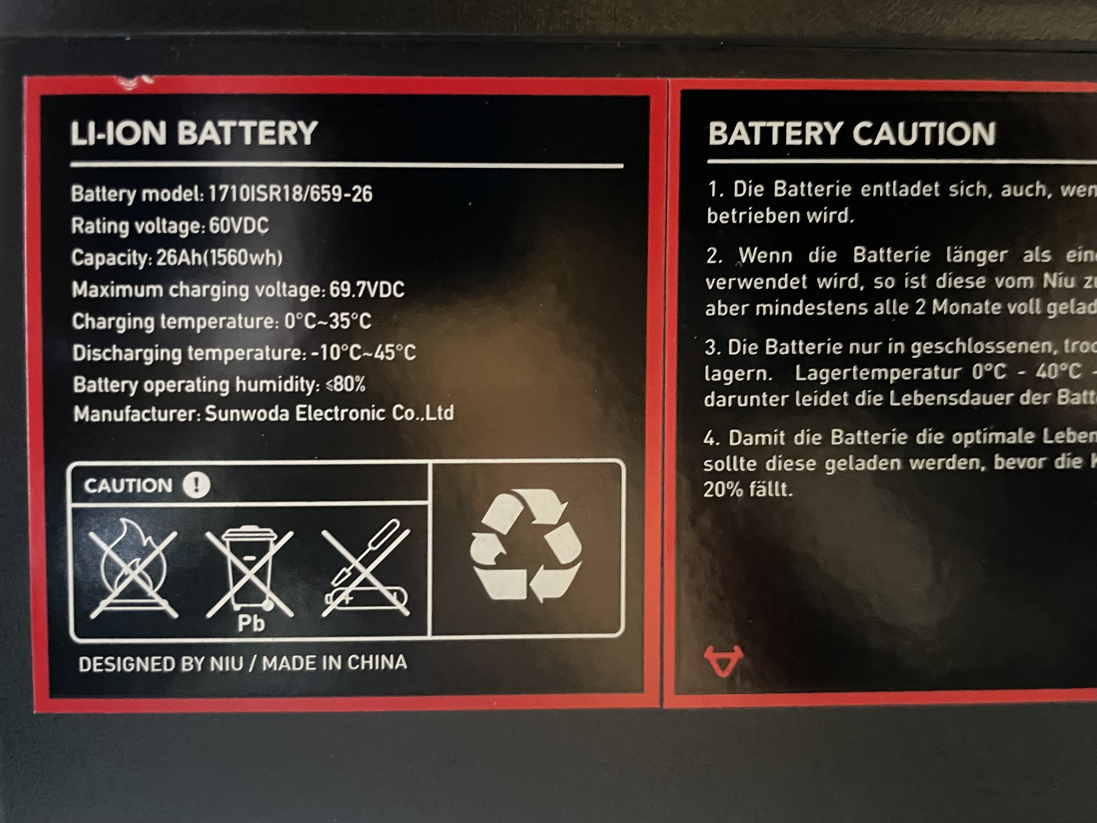 Es sind äusserlich die gleichen Akkus (26Ah) aber vielleicht hat Niu irgendetwas am BMS geändert.
