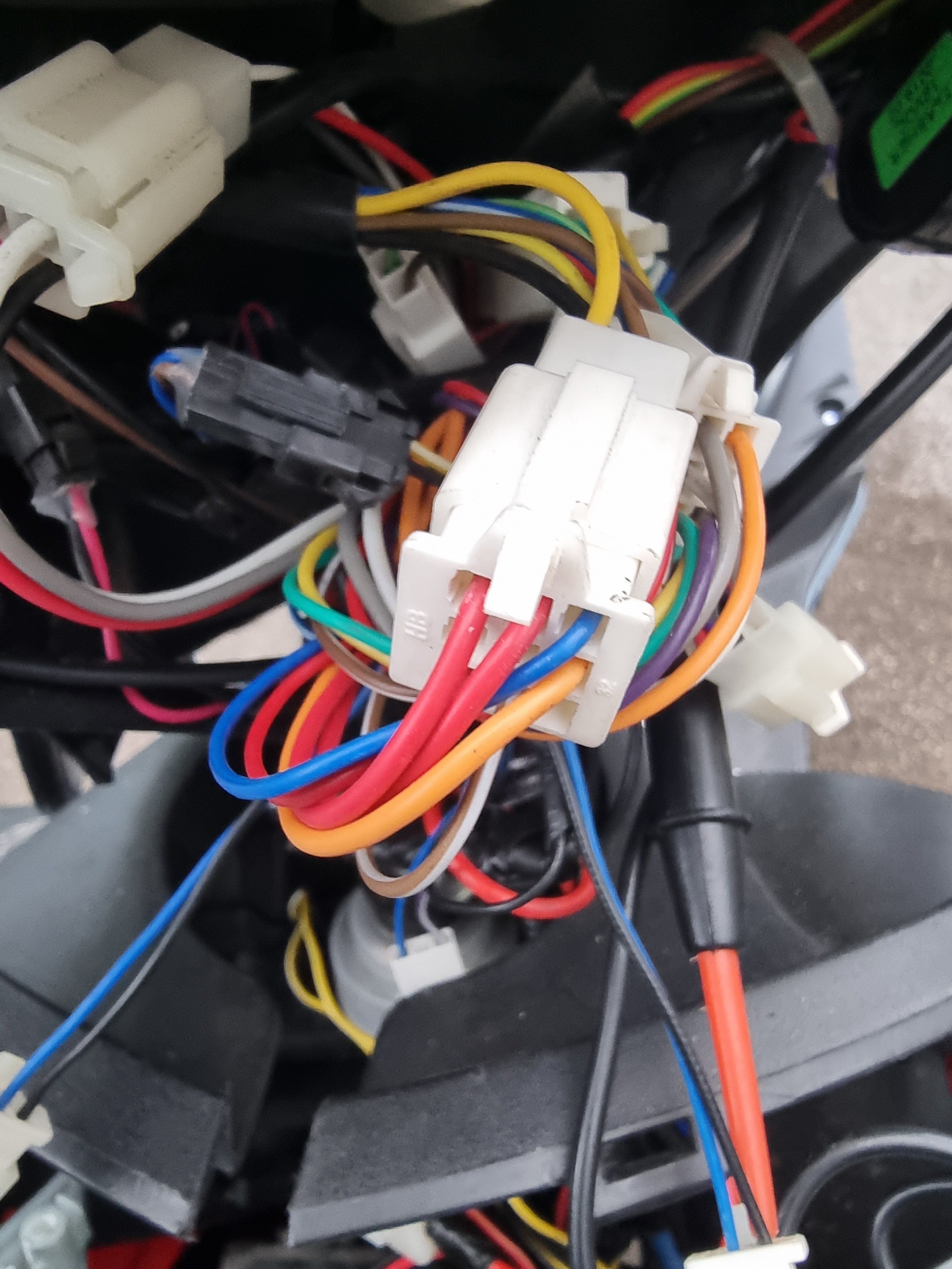 Das weisse kabel im Stecker rechts ist für das Fernlicht. Dieser Stecker führt zum Tacho.Das blaue Kabel ist für das Lichtsymbol zuständig.