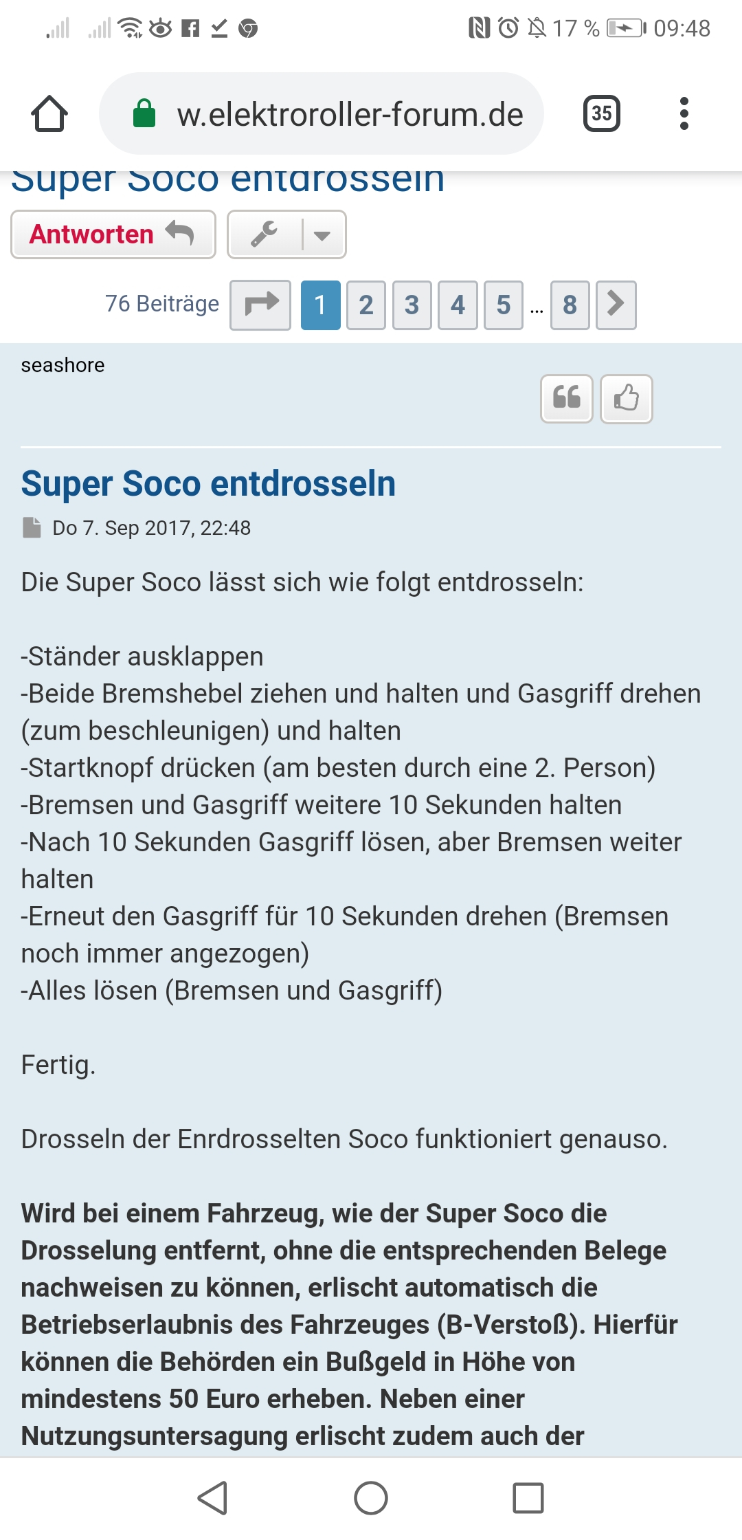 docroady hat geschrieben: Mo 13. Mai 2019, 08:58 Was ist denn in entdrosseltem Zustand für eine reale Endgeschwindigkeit zu erwarten. Was sagen die Erfahruswerte?