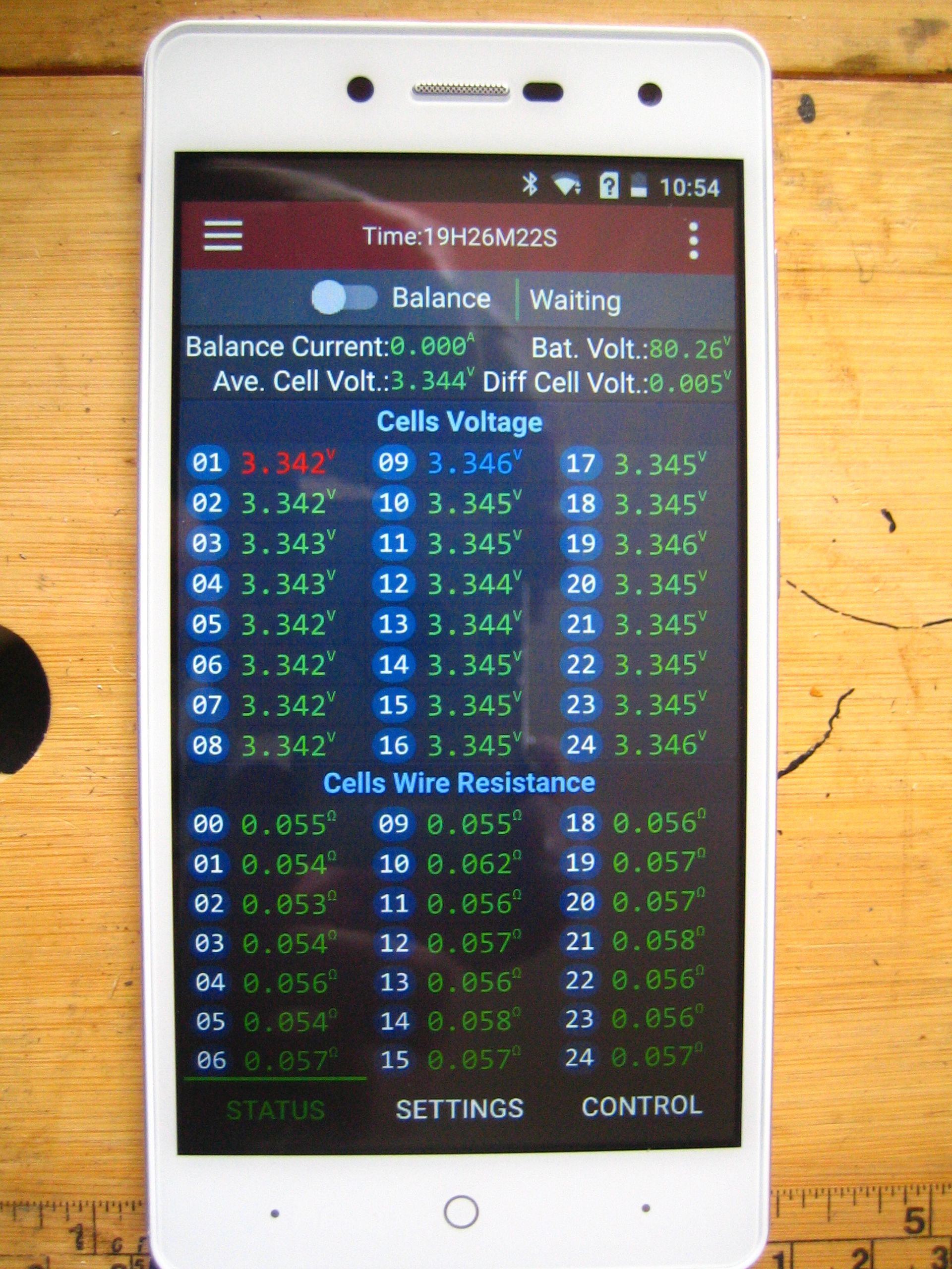 balancing repair, repair and other occasions. Es gibt 3 Seiten STATUS, SETTINGS und CONTROL. Die Seite Control ist inaktiv. Auch wenn man keine Settings gesetzt hat, funktioniert der JK-Balancer.