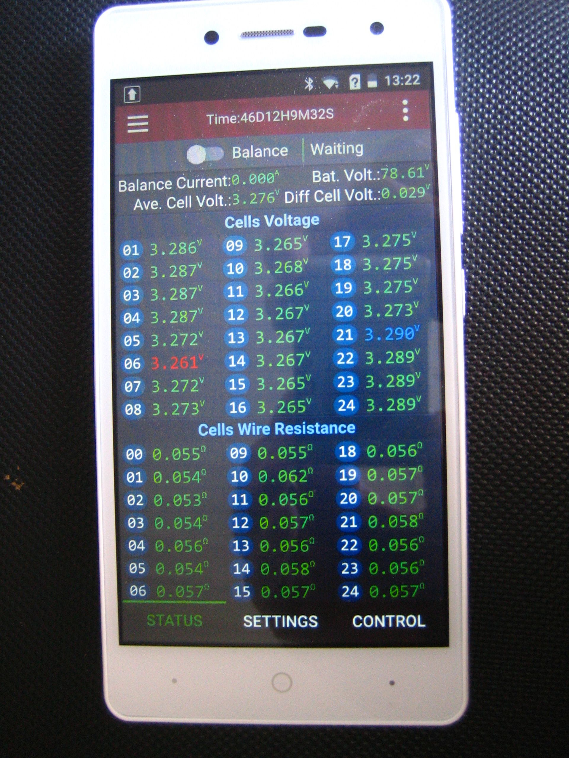 balancing repair, repair and other occasions. Es gibt 3 Seiten STATUS, SETTINGS und CONTROL. Die Seite Control ist inaktiv. Auch wenn man keine Settings gesetzt hat, funktioniert der JK-Balancer.