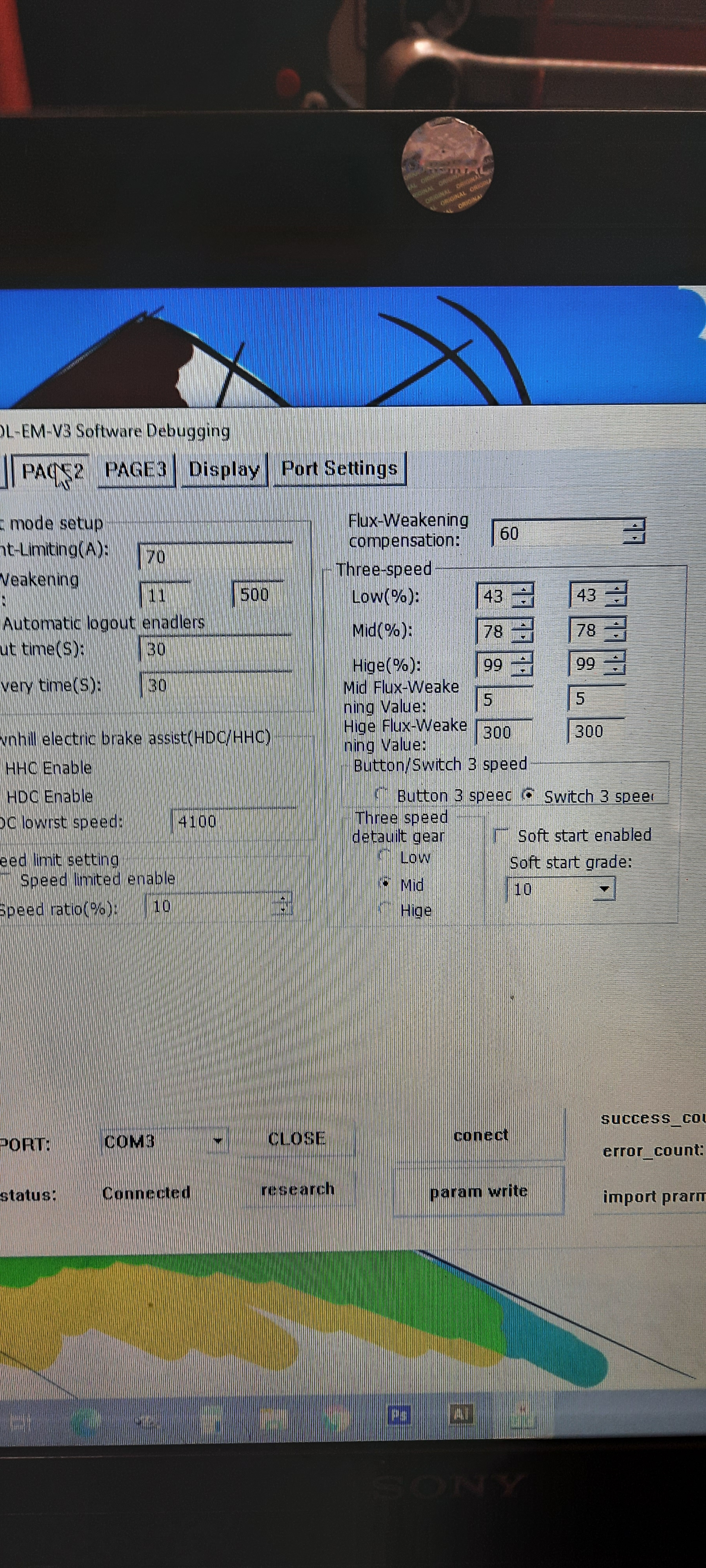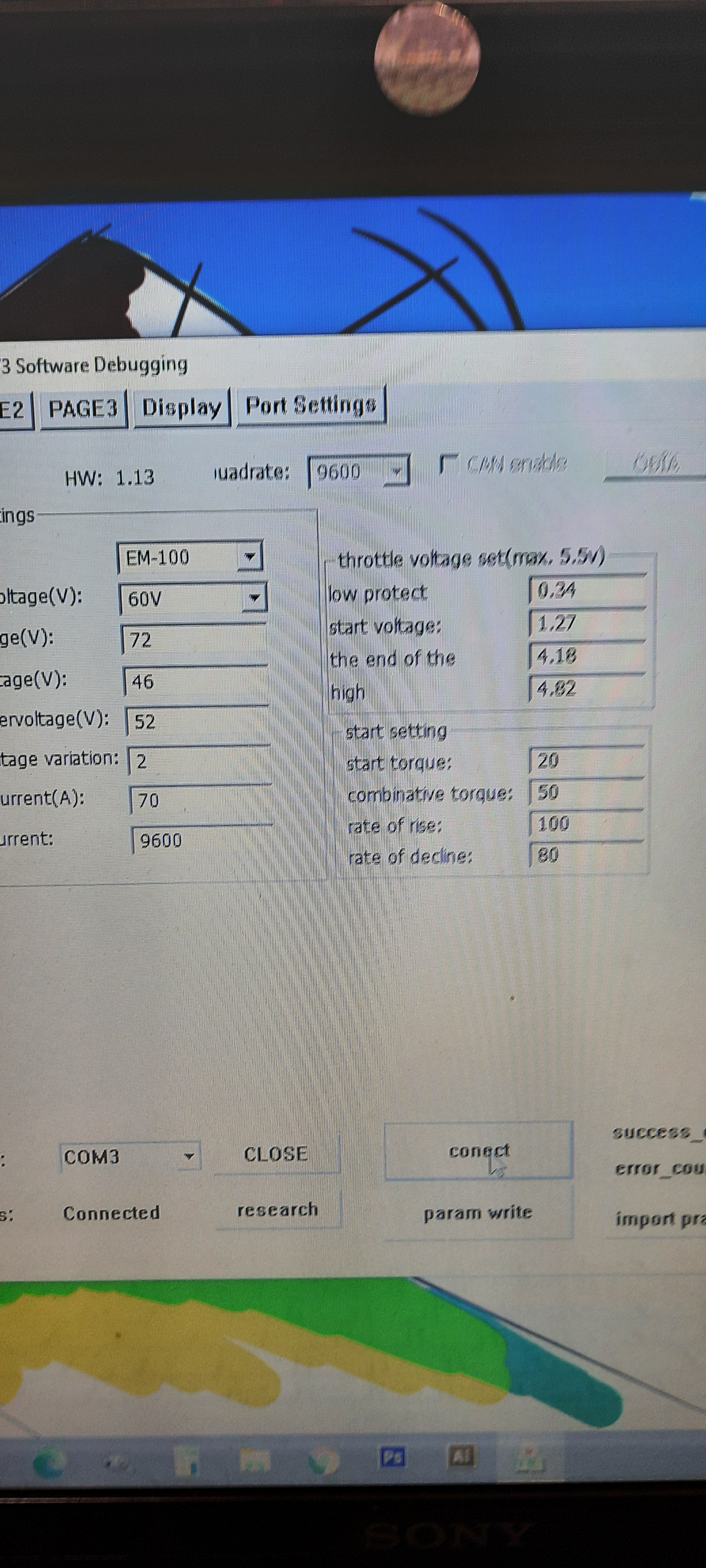 Der Votol streikt dummerweise nicht nur, wenn Kabel falsch angeschlossen sind, sondern reagiert auf gewisse Parameter-Zusammenstellungen,