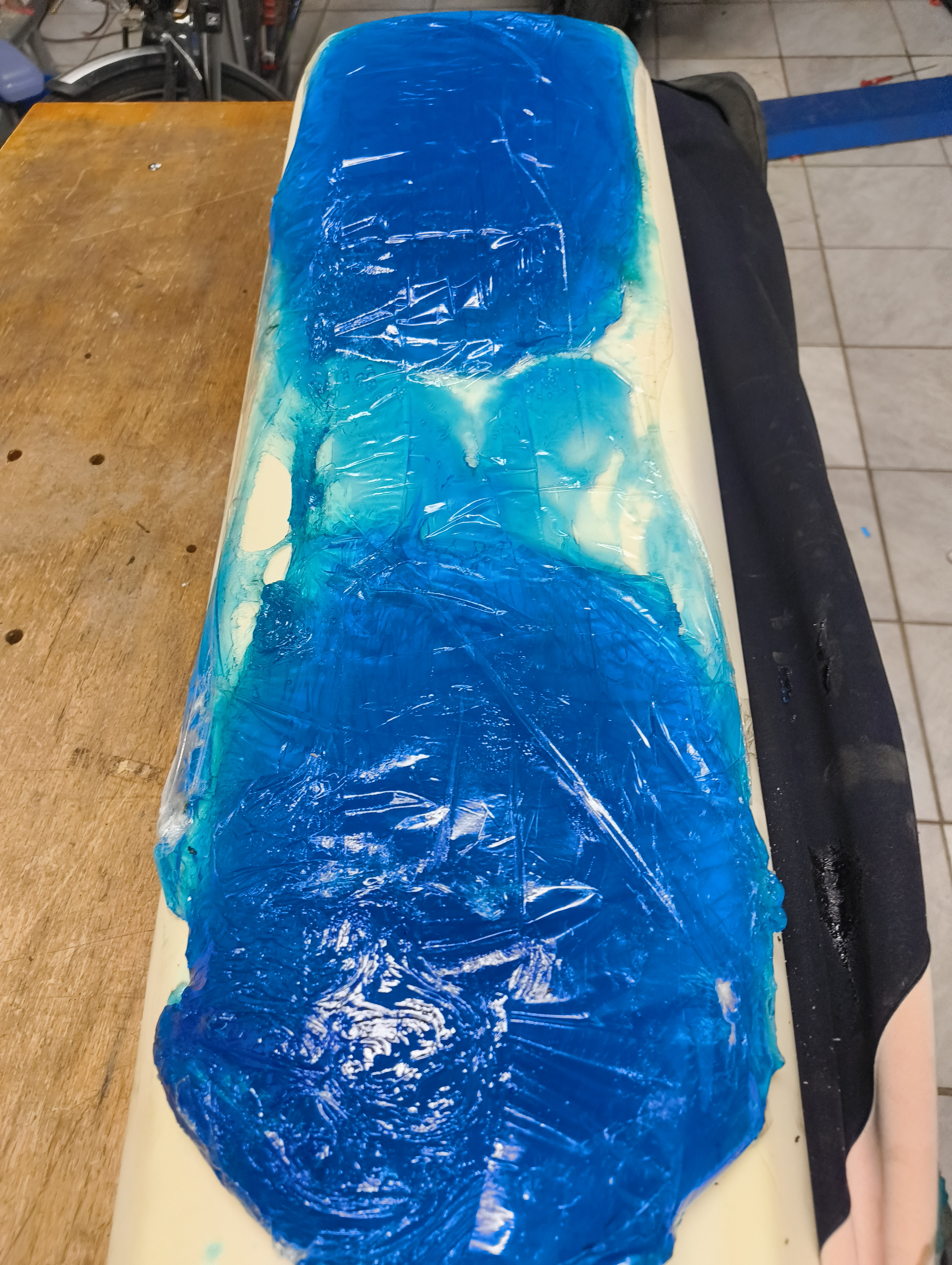 Die Rücklehne würe ich dann versuchen mit Holz zurechtzimmern, polstern und mit Leder überziehen. Möglichst in Tropfenform für die Aerodynamik. So mal die Vision...