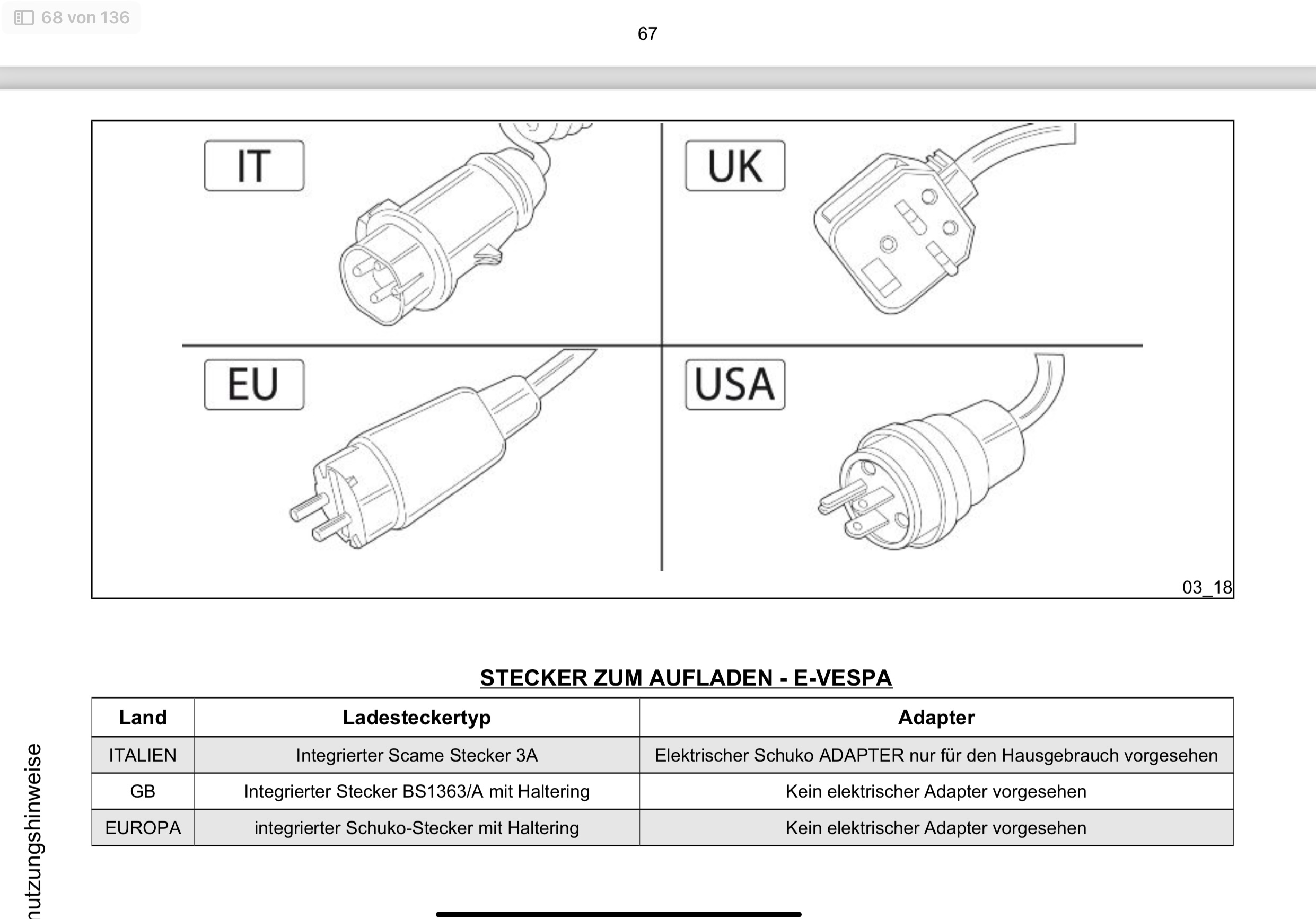 Habe heute einen Anruf vom Händler bekommen und man hat mich gleich an den Chef weitergeleitet. Dieser sagte mir, ein wenig pampig und genervt, das alle Elettrica seid 2 Jahren von Vespa nur noch mit dem italienischen Stecker und entsprechendem Adapter ausgeliefert werden. Dies wäre angeblich aufgrund Vereinfachung bei der Produktion und er könnte mir dazu ein Statement von Piaggio ausdrucken das das so richtig wäre. Auf meine Frage warum Piaggio dann nicht mal die Bedienungsanleitung ändert konnte er aber auch nichts zu sagen.