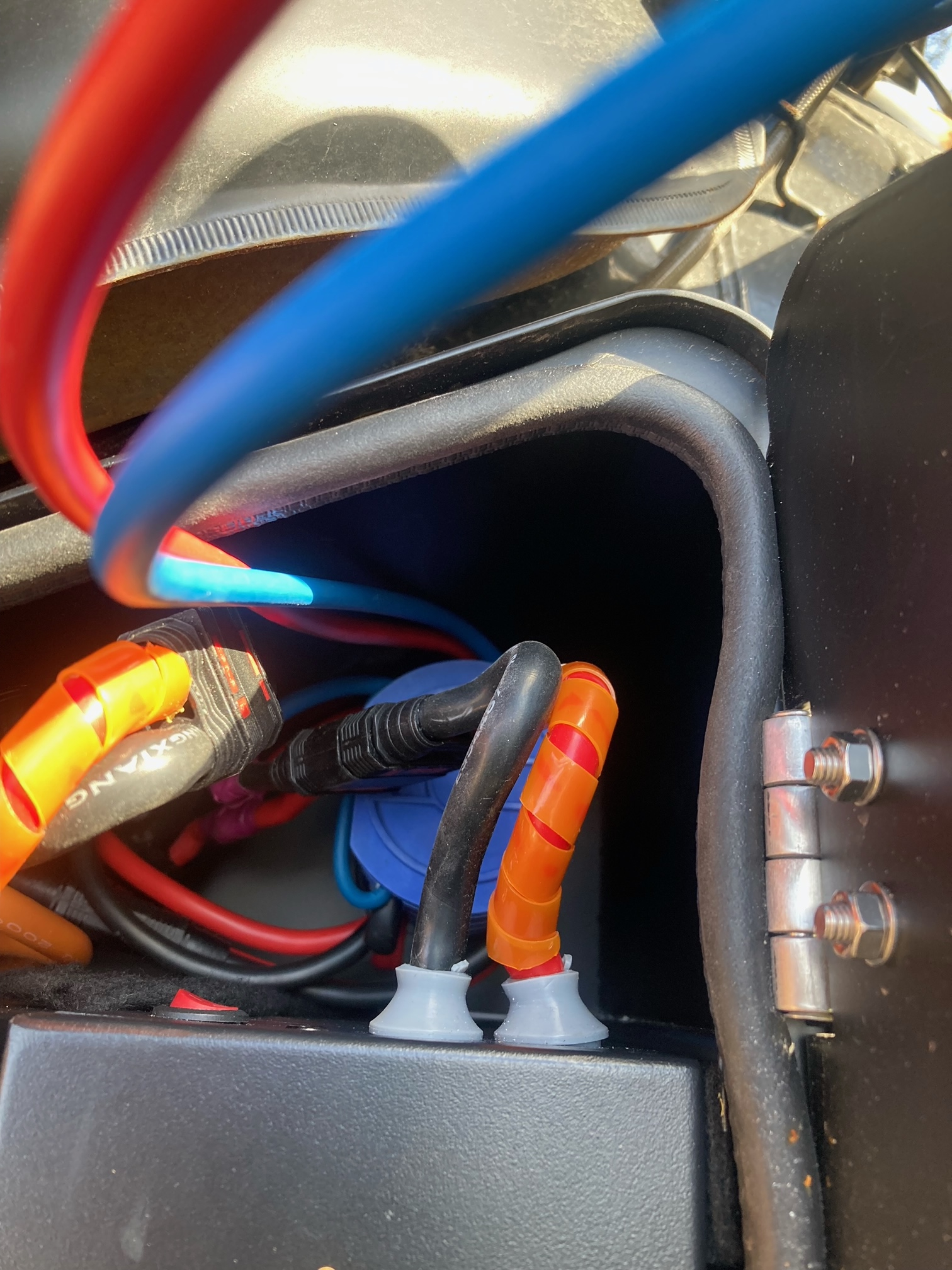 Am Schluss muss das Ladekabel in's Batteriefach. Eng, geht aber.