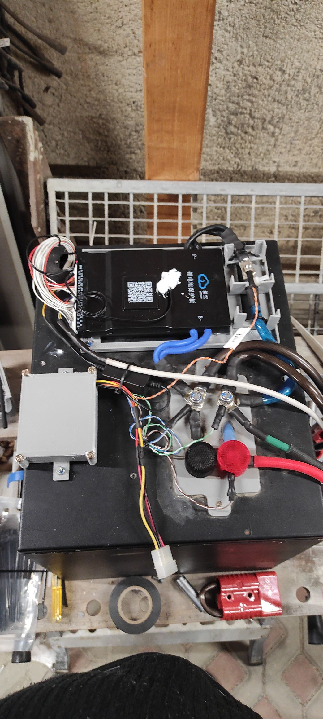 Hab nach 3 ausgefallenen BMS's dann übrigens noch einen bypass gelegt umd das BMS zu umgehen. Erreichbar über die Seitenabdeckung die nur mit 4 Schrauben (und einem Fake-Schloss) gesichert ist. Das ganze ist eine Schleife an einem Anderson-175A Stecker. Im Notfall einfach einstecken und das BMS wird übergangen, mit allen Risiken. Reicht aber im Notfall zum Nachhause-Fahren.