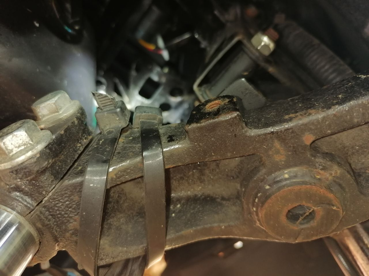 Die Federn der hinteren Stoßdämpfer scheinen am meisten abbekommen zu haben, der Rahmen selber sieht in weiten Teilen sehr gut aus. Zumindest im Dunkeln, ich mache morgen im Tageslicht nach dem Putzen nochmal ein Bild. Die Schrauben ließen sich sehr gut lösen- kein Wunder, der Freundliche hatte vieles davon im Frühjahr schon mal runtergebaut um die Stoßdämpfer zu wechseln. Dabei hatte er ein paar Schrauben ersetzen müssen und in der Folge die Schrauben in Schmierfett getunkt vorm einschrauben.