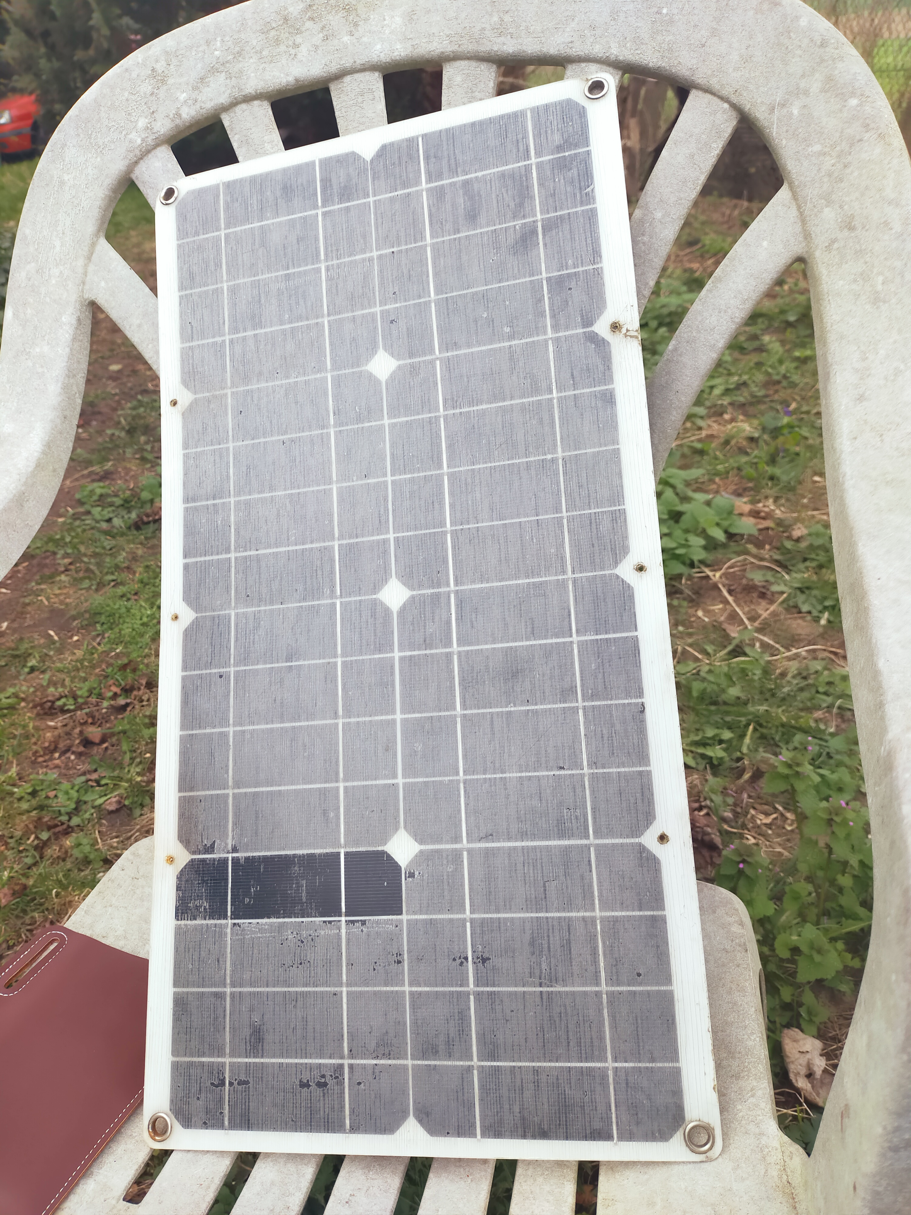 Ich werde folgende Zeilen für Interessierte schreiben, die auch Solarmodule auf ihrem Elektroroller anbauen möchten. Die zwei 12 V zuvor verbauten Solarmodule und Haltegitter habe ich abgebaut, weil die China Module sowieso nicht so leistungsfähig waren und jetzt an der Anschlußdose ein Kabelbruch vorliegt und die Moduloberflächenfolie komplett durch das Sonnenlicht, nach etwas 3 Jahren, beschädigt. Mann müßte diese oberste Schicht abbürsten, um die Plastereste zu entfernen. Zwei Module in Reihe geschaltet gewesen, MPPT boost step Up Laderegler verwende ich weiter. Zusätzlich habe ich einen Bauartgleichen angebaut ,der ebenfalls auch 72 V Nennspannung, also fast ca. 88 V Spannung zum Laden der 62 Ah 72 V Bleigelakkubank. Der Umbau wurde auch nötig, weil ich die Anhängerkupplung meines baugleichen anderen Leo jetzt auf diesen angebaut habe. Jetzt mußich noch ein neues Haltegitter für das 24V, größere 100 W Modul des deutschen Herstellers offgridtec bauen.