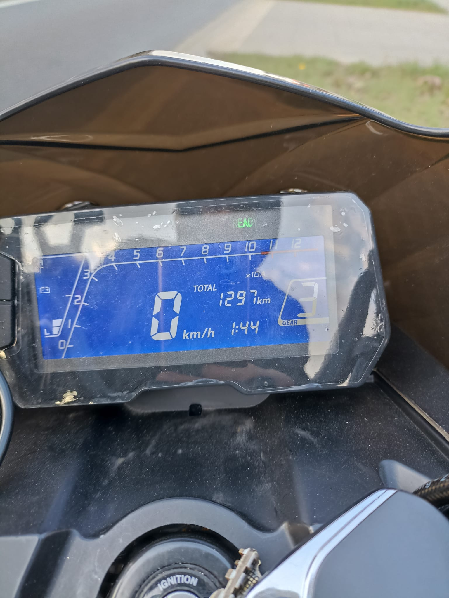Leider bin ich letzte Woche trotz schönsten Sonnenschein und Wettervorhersagen ohne Regen von einem Schauer überrascht worden und am Folgetag hatte ich Nebel im Cockpit/Display/Kombiinstrument.