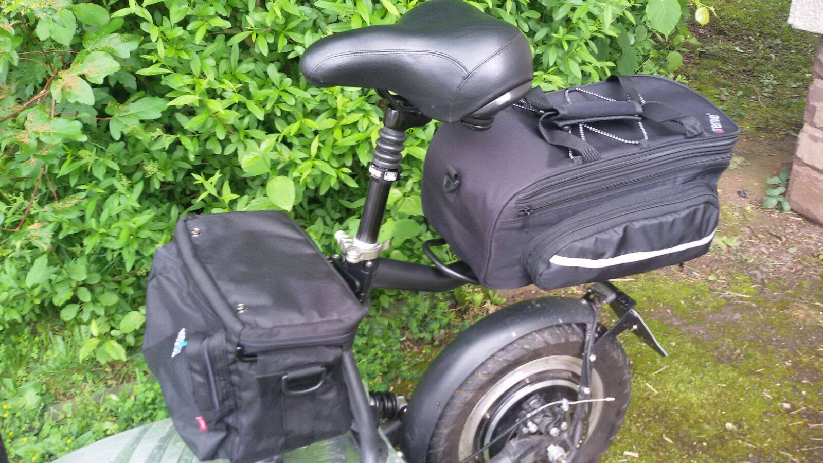 Vom LFP (LeiseFlitzer Peter) erhielt ich gestern per WhatsApp folgende Bilder von seinem Revoluzzer 1.0 mit 32 km/h. Der ist jetzt so mit Packtaschen bestückt, dass er mühelos zwei Akkupacks zusätzlich mitnehmen kann.