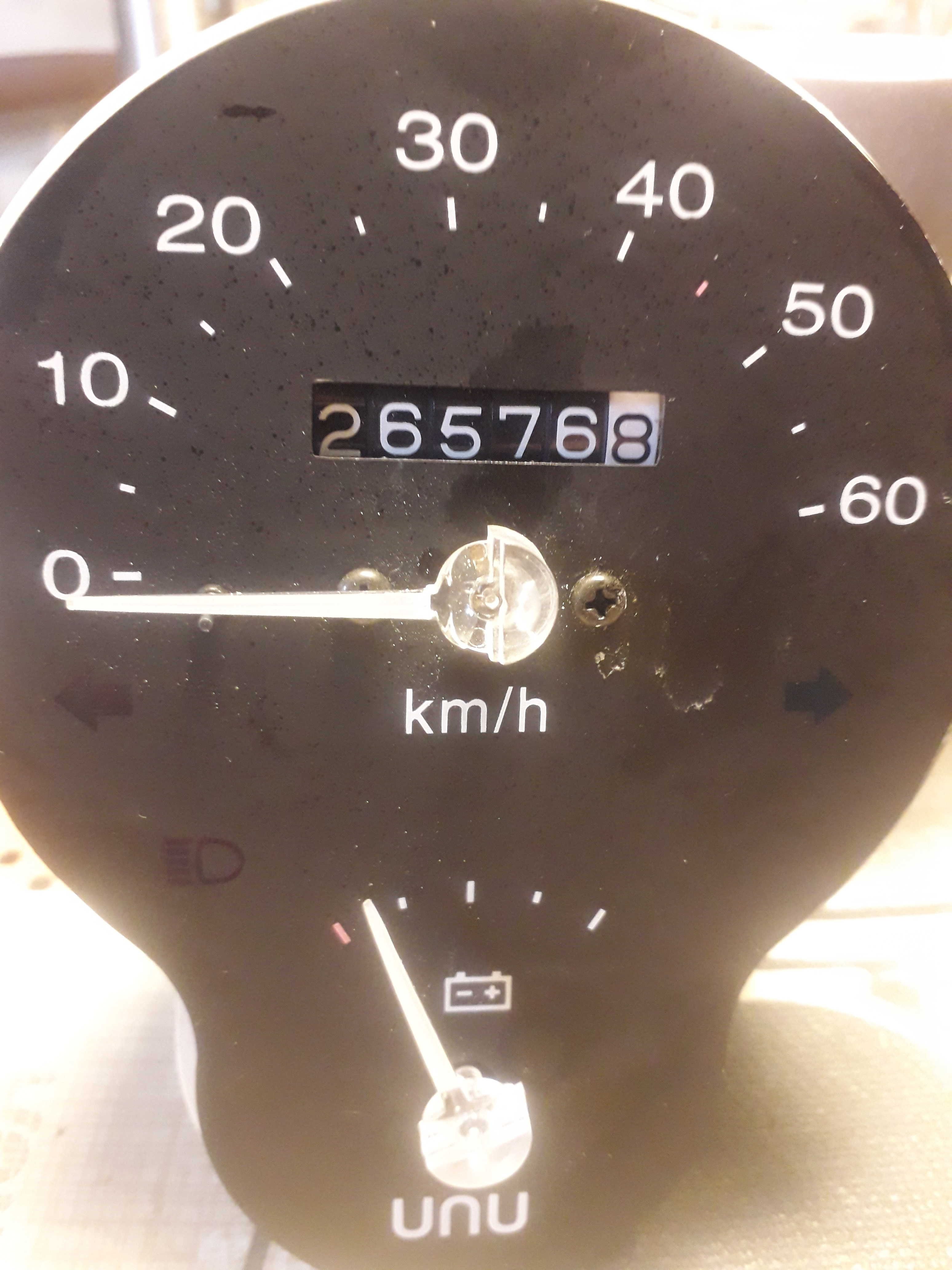 Anbei das letzte Foto vom alten Tacho, bevor ich ihn zerlege. Oder möchte ihn jemand als Bastelobjekt haben?