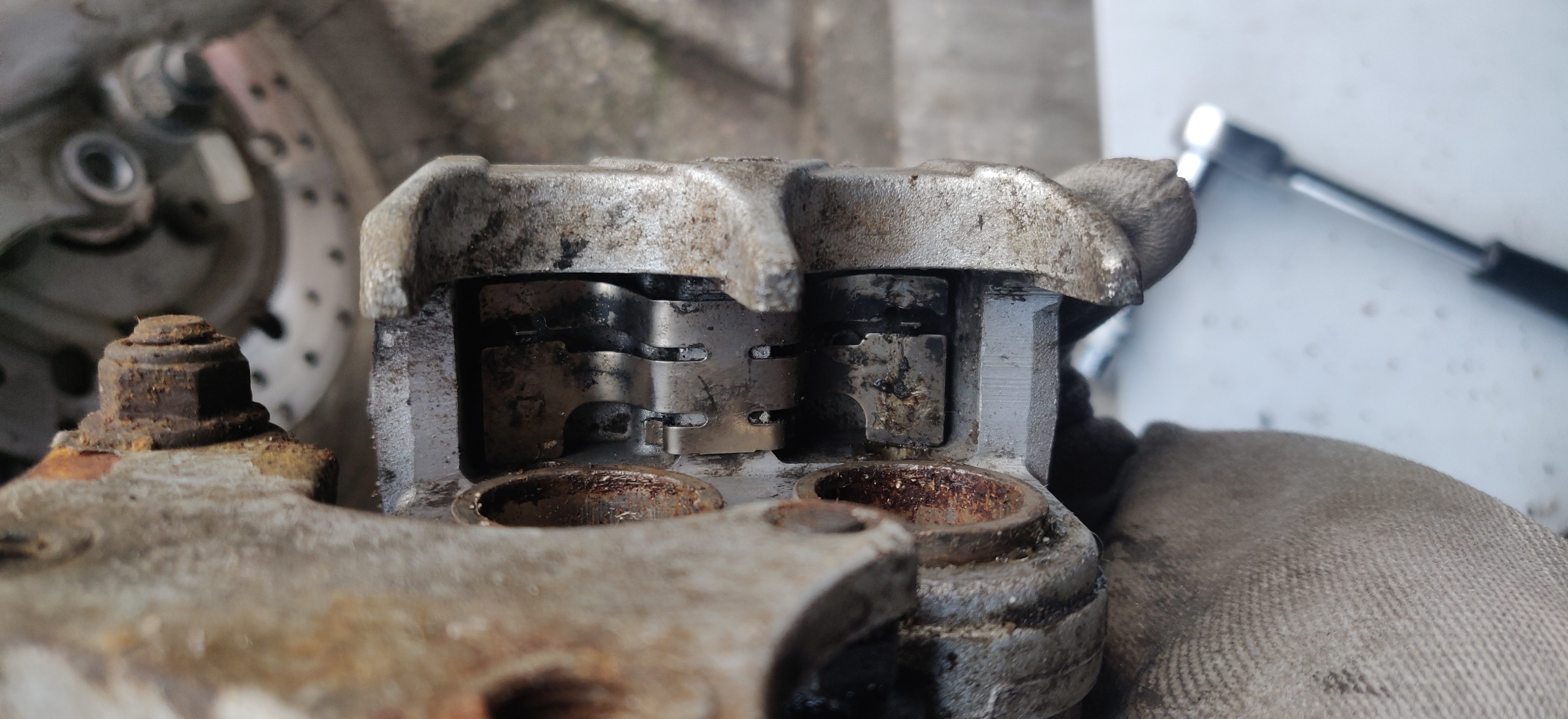 Der Sattel ist komplett ok, das Spiel liegt in der Führung , auf dem oberen Bolzen bleibt der Sattel trotz sauberen Bolzen, frischen Fett und neuen Gummi immer etwas hängen.