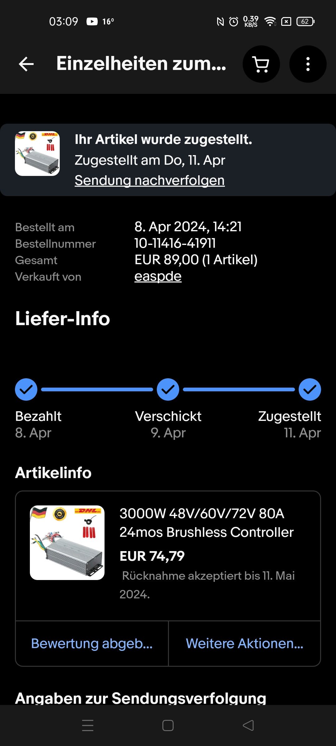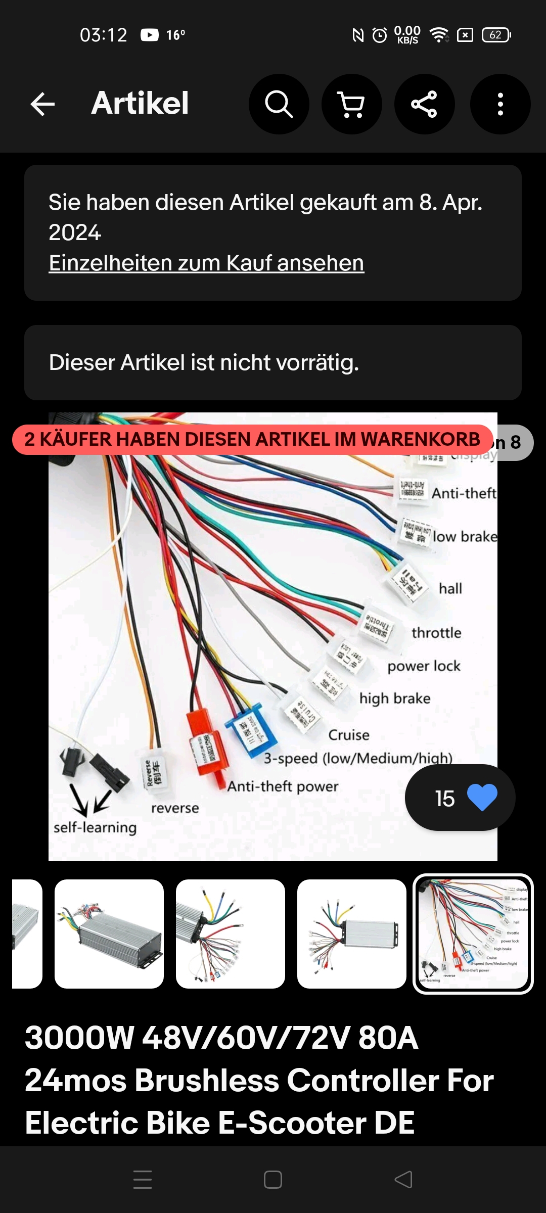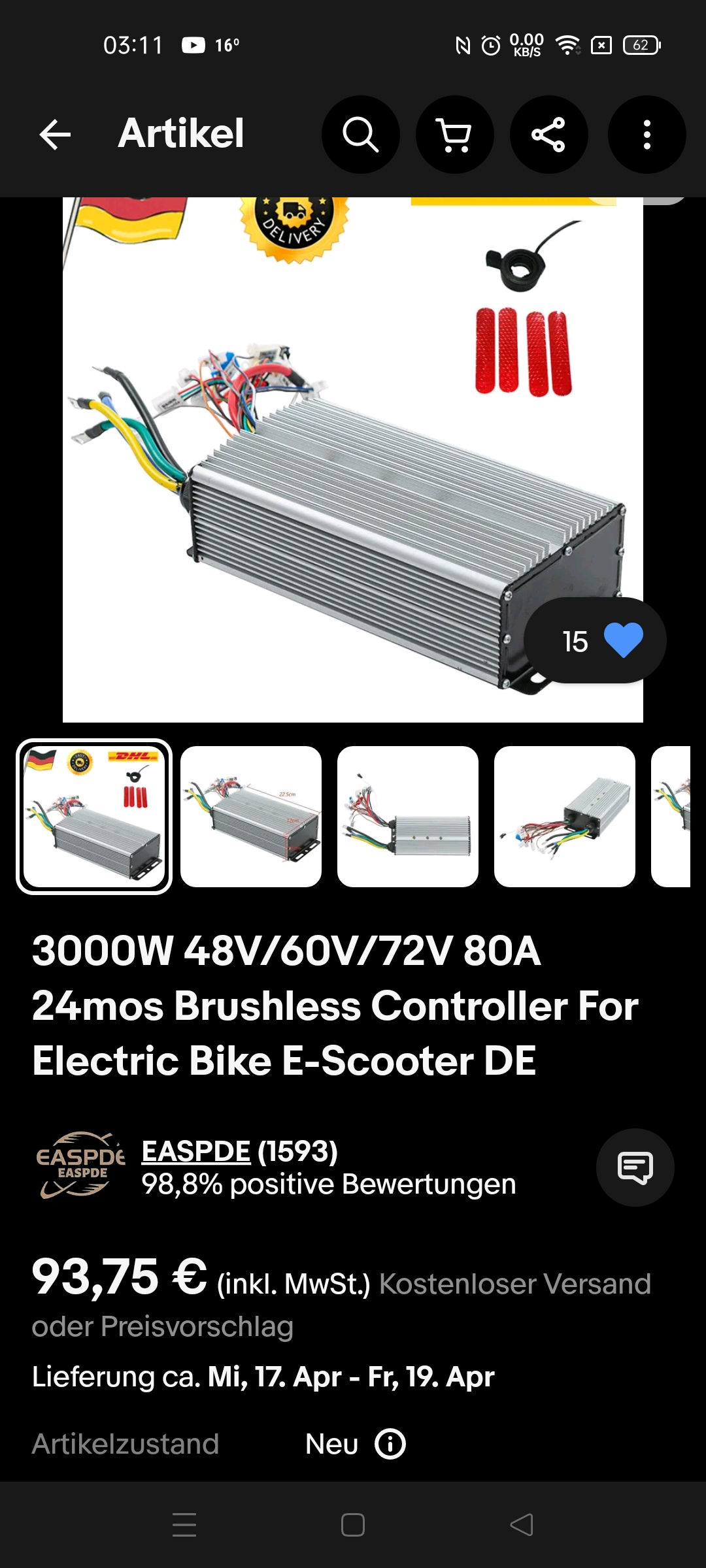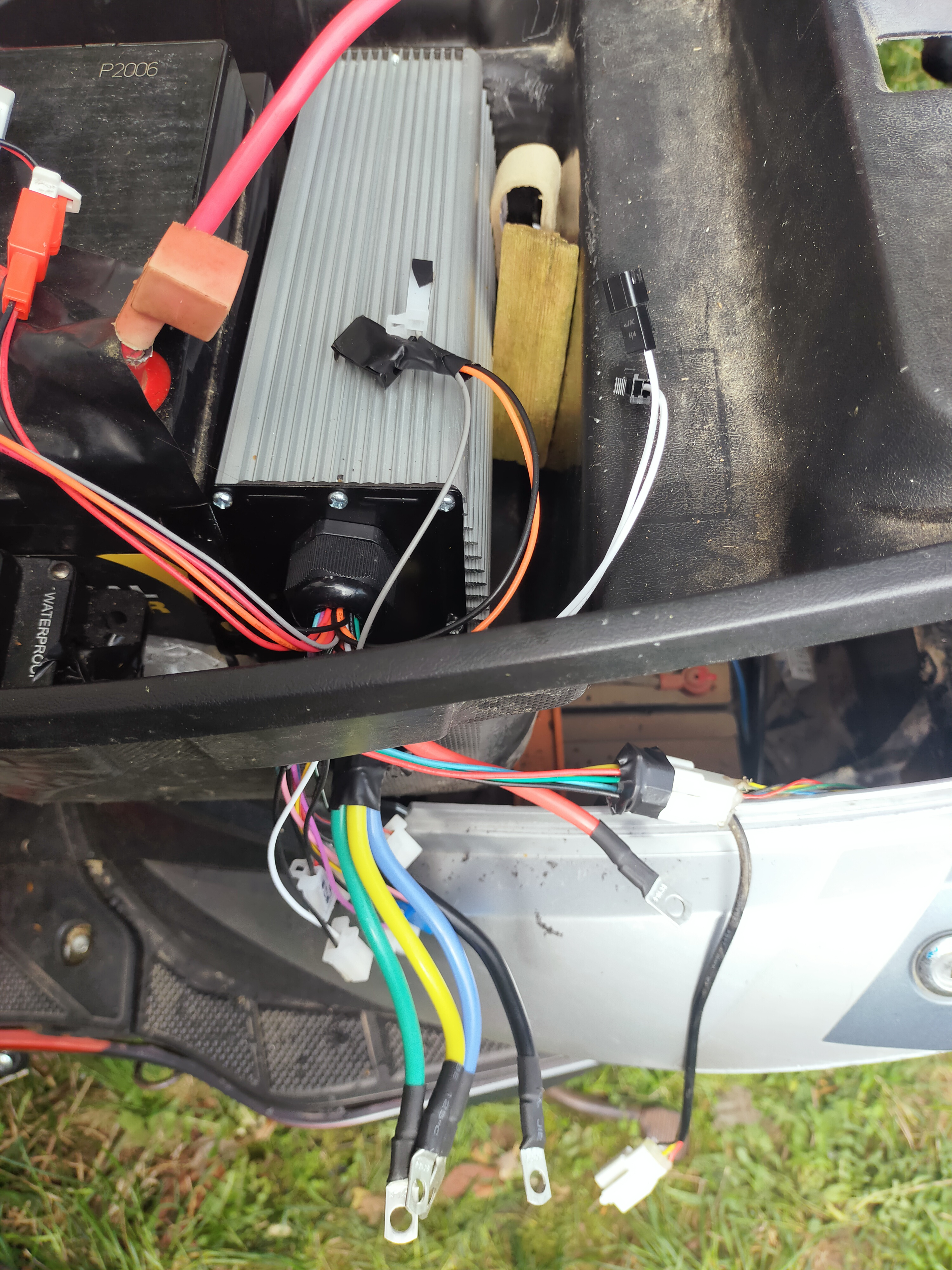 Soeben habe ich von meinem anderen Leo Baujahr 2020, den originalen 35 A 72 V Controller ausgebaut. Der Neue 72V 80 A passt nicht in das Controlerfach, auch nicht in den Akkuraum. Ich werde ihn in die Sitzbank einbauen und muß alle Kabel verlängern. Genaue Beschreibung folgt, ich bin jetzt zu müde, muß schlafen, da ich in wenigen Stunden zur Arbeit muß.