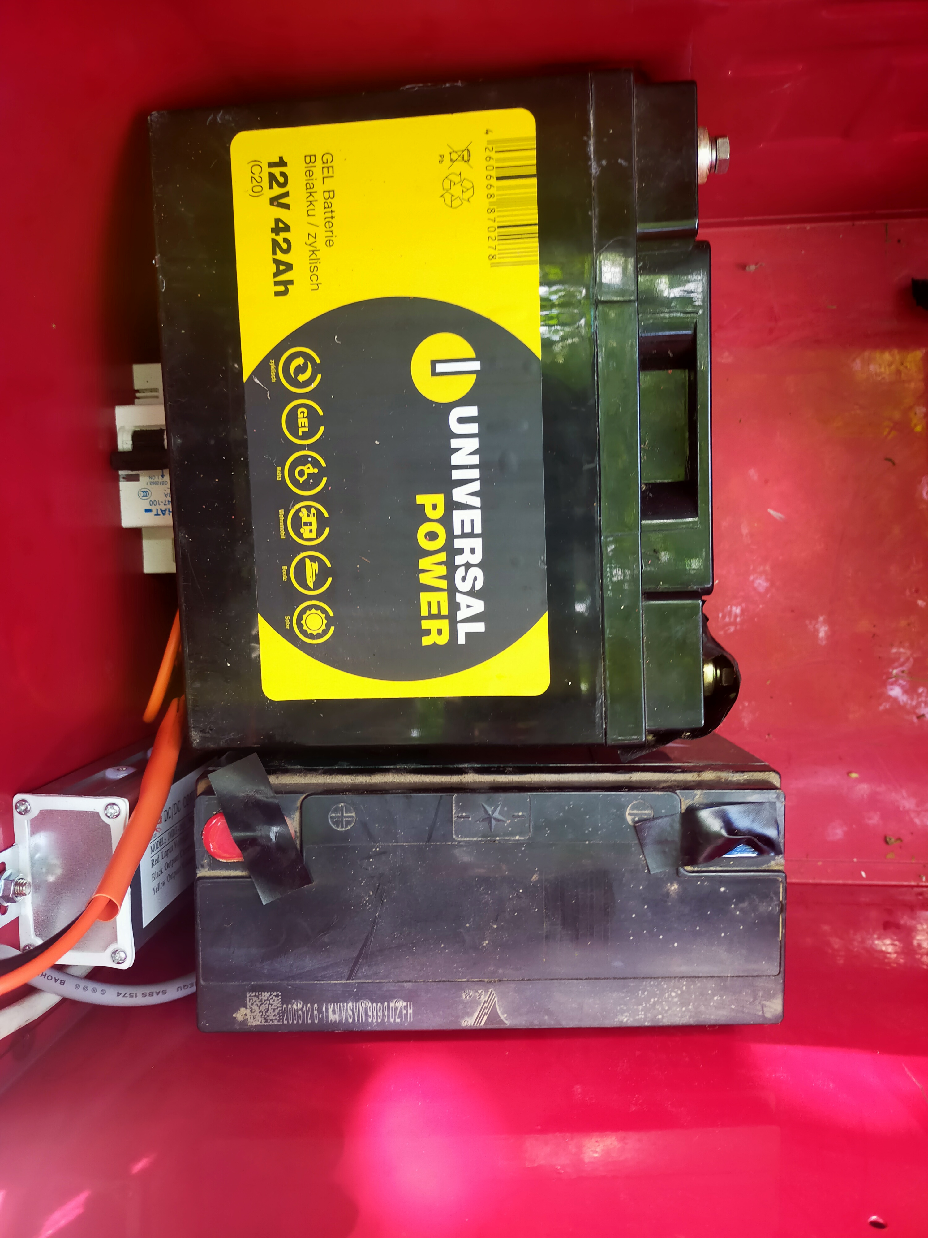 Mein 2019 gekaufter Elektroroller fährt seit heute wieder und ist bei der HUK für 34 € ab April versichert. Ein 12 V Bleigelakku ist unbrauchbar, aber für ein Anhängerlicht noch nutzbar...Ich wollte all 6 Akku wechseln, aber der Akku an das das Fahrzeug Minuskabel, und jener an welchem das Fahrzeug Pluskabel befestigt wird weisen stark verrostete Schrauben auf, die sich nicht gewaltfrei rausdrehen lassen. Da die Akku noch OK sind, beließ ich diese 2 im Elektroroller und tauschte nur den Defekten und 3 weitere noch brauchbare Akku gegen 4, die ich aus meinem 3- rädrigen Luxxon Elektroroller ausbaute, welche nur 60 km (sechzig) genutzt wurden und kalendarisch etwa das gleiche Alter von 5 Jahren haben, wie die im Leo. Alle Akku wurden auch bei Nichtbenutzung regelmäßig nachgeladen.