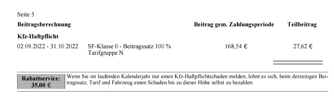 Außerdem solltest du anfragen, warum du in SF0 eingestuft wurdest, und nicht SF 1/2. Üblicherweise gilt SF0 nur für Fahranfänger mit FS<3Jahre.