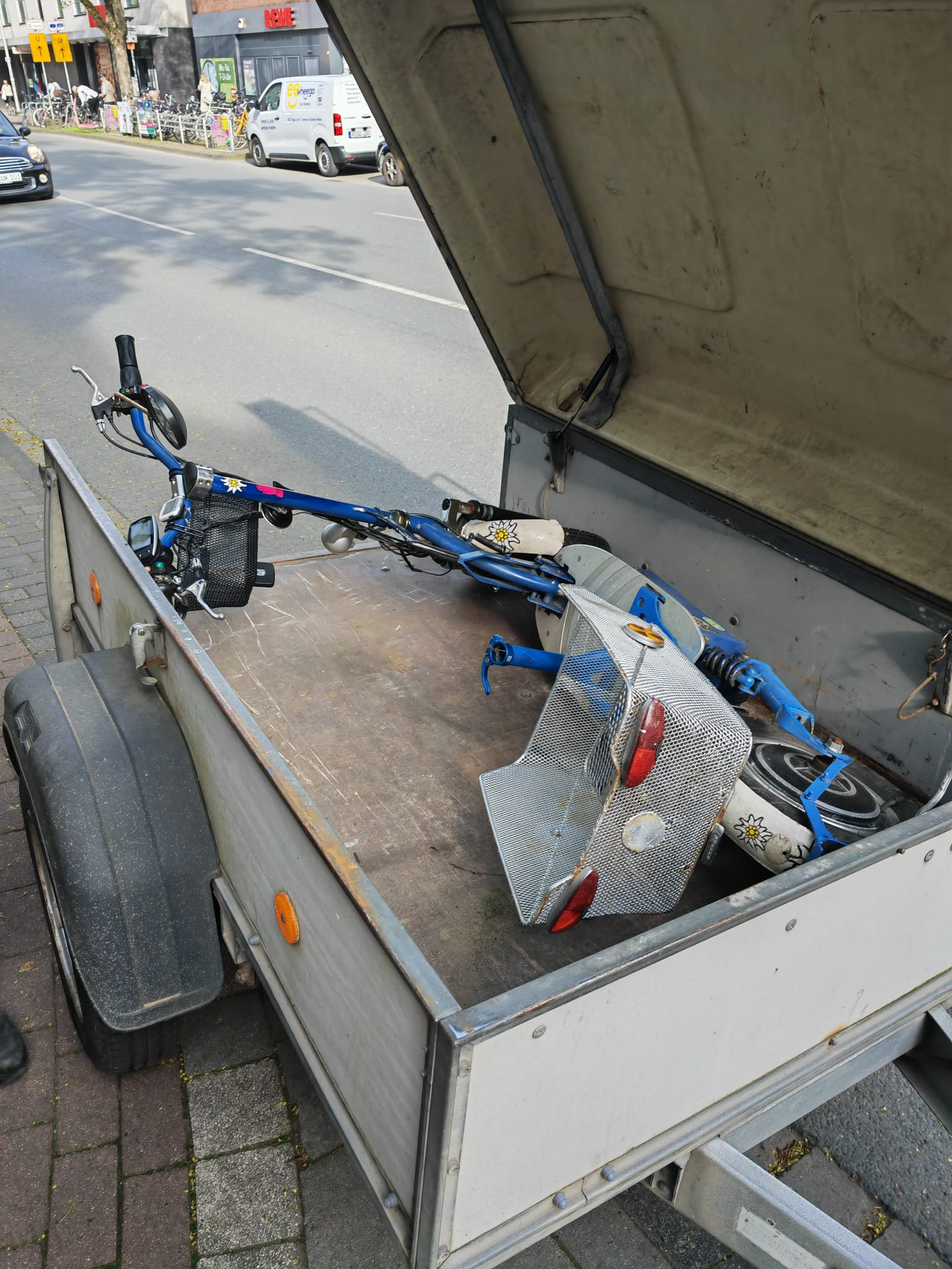 Seit 2018 bin ich ausschließlich mit meinem Revoluzzer 2.0 unterwegs gewesen, aber auch viel gelaufen, weil das sehr gesund ist. Auch wenn der Bläuling gut unter einer Plane geschützt auf dem Hof stand, so hat ihn dieses nicht jünger und besser gemacht. Um ihn verkehrssicher und fahrbereit zu machen, müsste viel Zeit und Geld investiert werden. Und das lohnt sich nicht mehr, zumal mein Revoluzzer 2.0 gerade erst voll überarbeitet wurde und super fährt.
