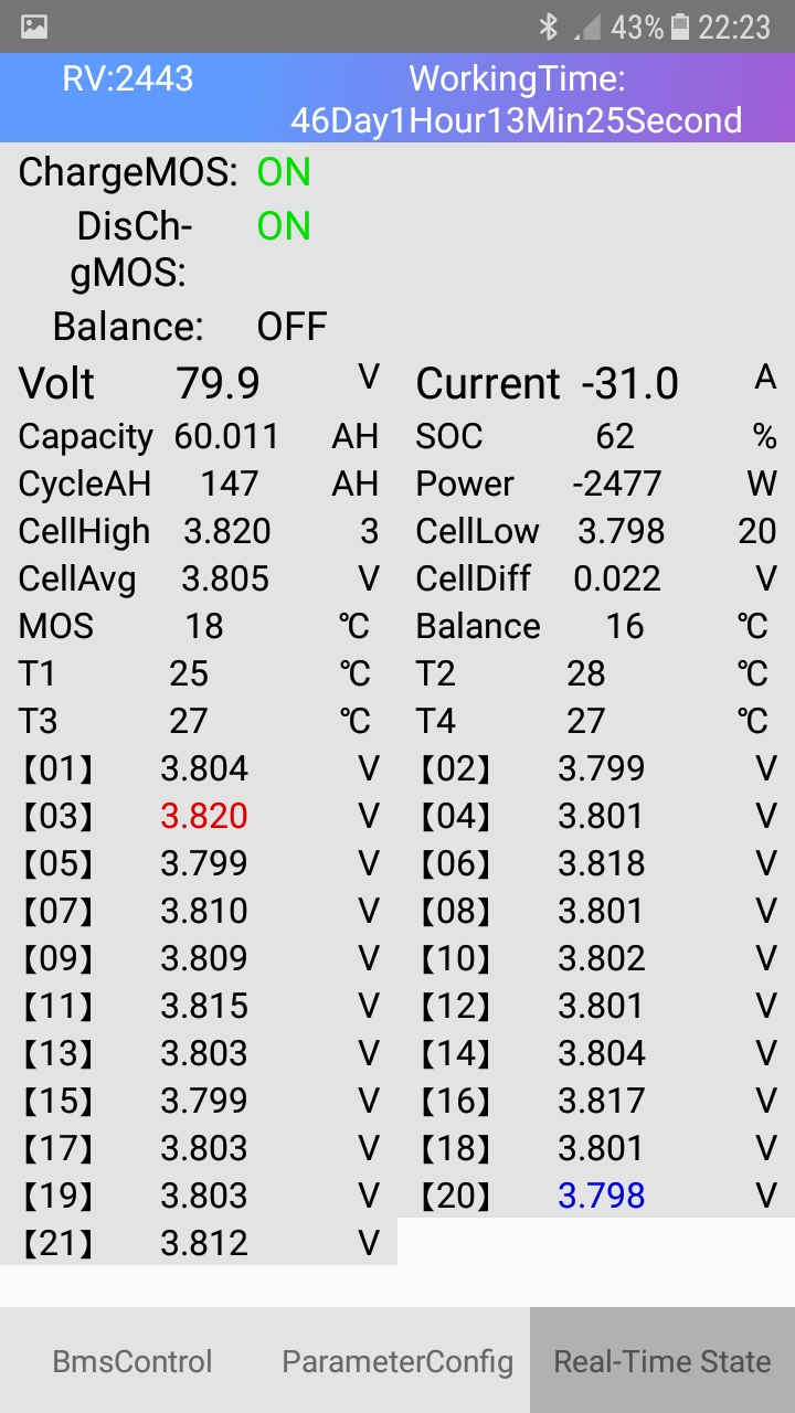 Das ANT BMS stellt das balancieren zum Ladeende leider ein und balanciert nicht weiter. Eventuell muss ich hier die Parametrierung noch mal anpassen.