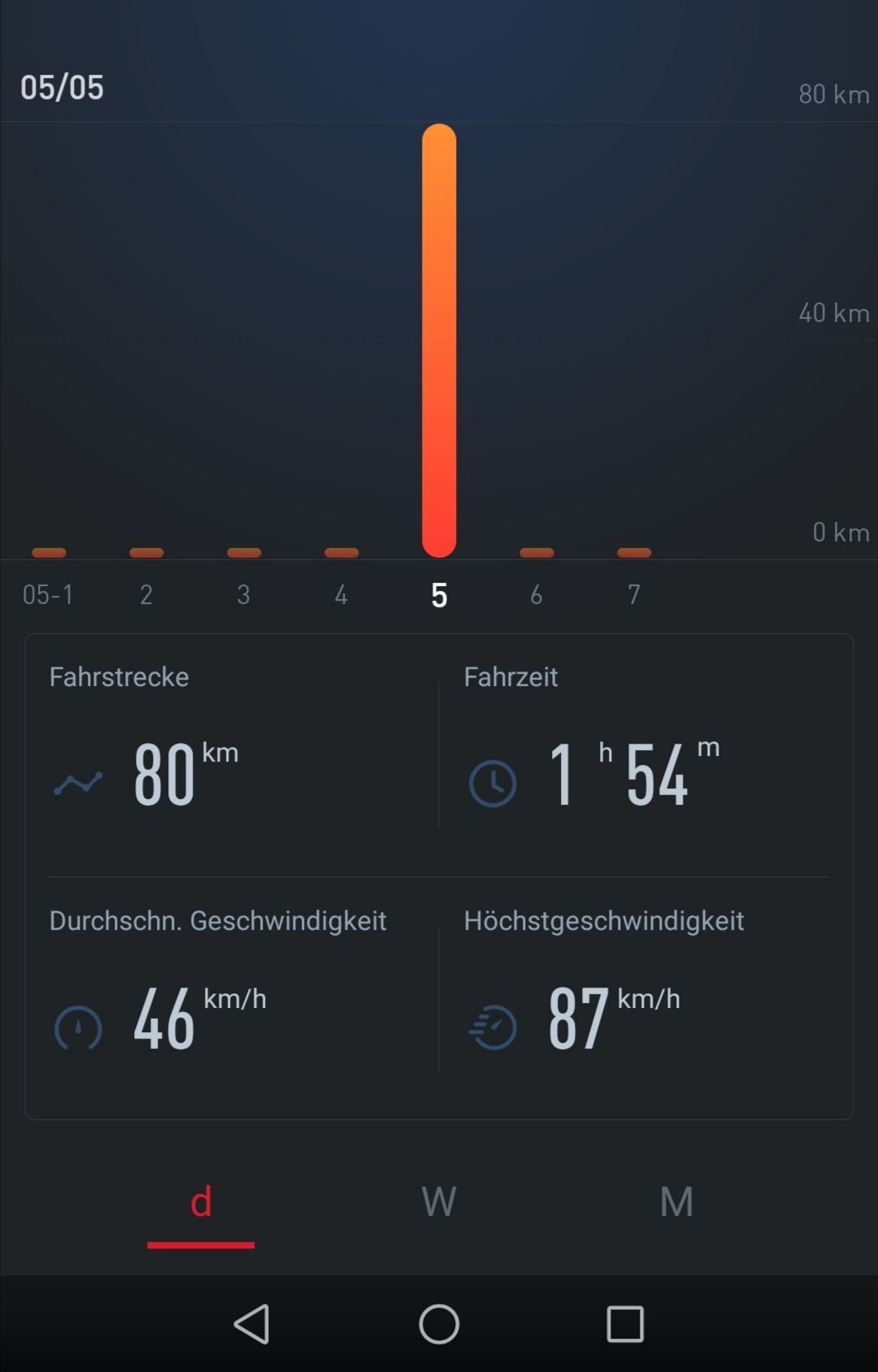 Ein typischer Tag auf die Arbeit und zurück, sieht so aus:. Man beachte die Durchschnittsgeschwindigkeit dank hohem Autobahnanteil.