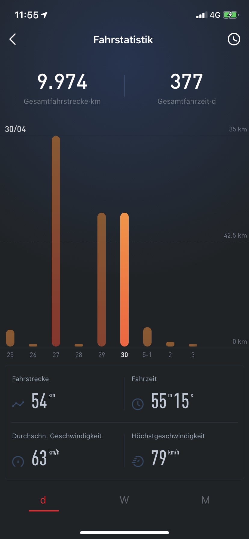 ich habe mit einer Mischmaschfahrt aus allen drei Modi 80,3 km geschafft. Allerdings bis auf 18% runter. Bergrunter hat er mir kurz sogar die 87 Km/h angezeigt. Der Berg wäre für noch schneller zwar lang genug gewesen, aber da kam das 60 ! Schild.