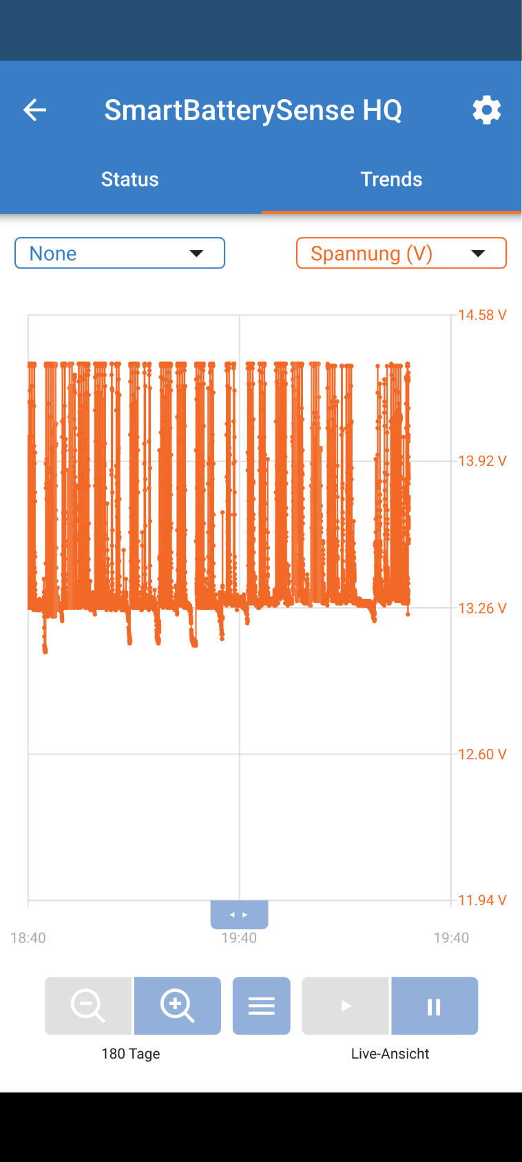 Unser Fahrzeug lädt sich selbst auf, auch im Stillstand. Die Historischen Daten des Victron Loggers gehen nur 180 Tage zurück aber man sieht das die Spannung nie unter 13 Volt gefallen ist mit dem Lithium Akku. Auch wenn ich z.b wegen schlechtem Wetter oder Urlaub nicht gefahren bin wird nachgeladen. Vermutlich zu viel für den Bleiklotz, anders kann man sich den Mist nicht erklären.
