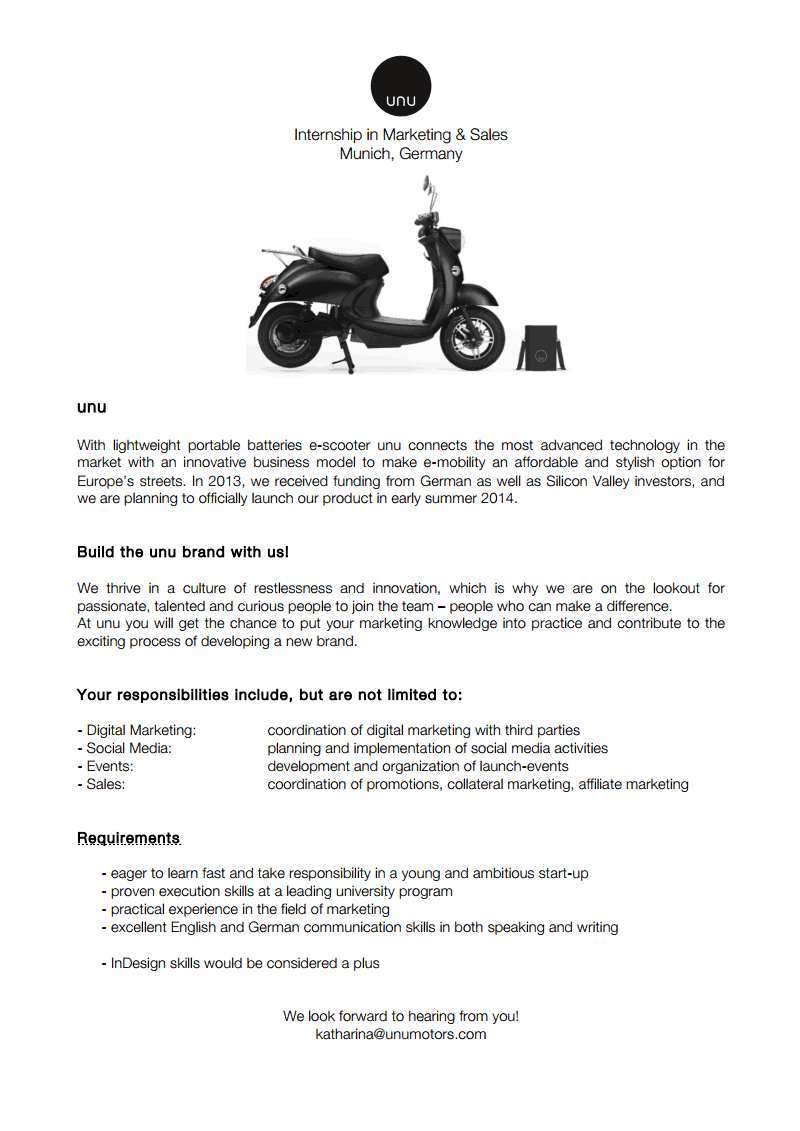 Warum sollten Sie sich nur auf Deutsche beschränken müssen? Es macht generell wenig Sinn, Stellenausschreibungen für Rechtsreferendaren anzufertigen, um damit Schindluder zu treiben (weil da einfach kein Profitpotenzial drin liegt). Wenn man ins HR schaut, ist Unu in der Kategorie "Forschung und Entwicklung" angesiedelt. Da macht es schon Sinn, sich jemanden zu holen, der sich unter Anderem mit Patentrecht beschäftigt. Wenn man sich dann noch die Lebensläufe von den Gründern ansieht, wollen die nicht einfach nur einen Roller auf den Markt bringen, sondern tatsächlich was bewegen in der E-Mobilität.2Alf20658 hat geschrieben:Achso !