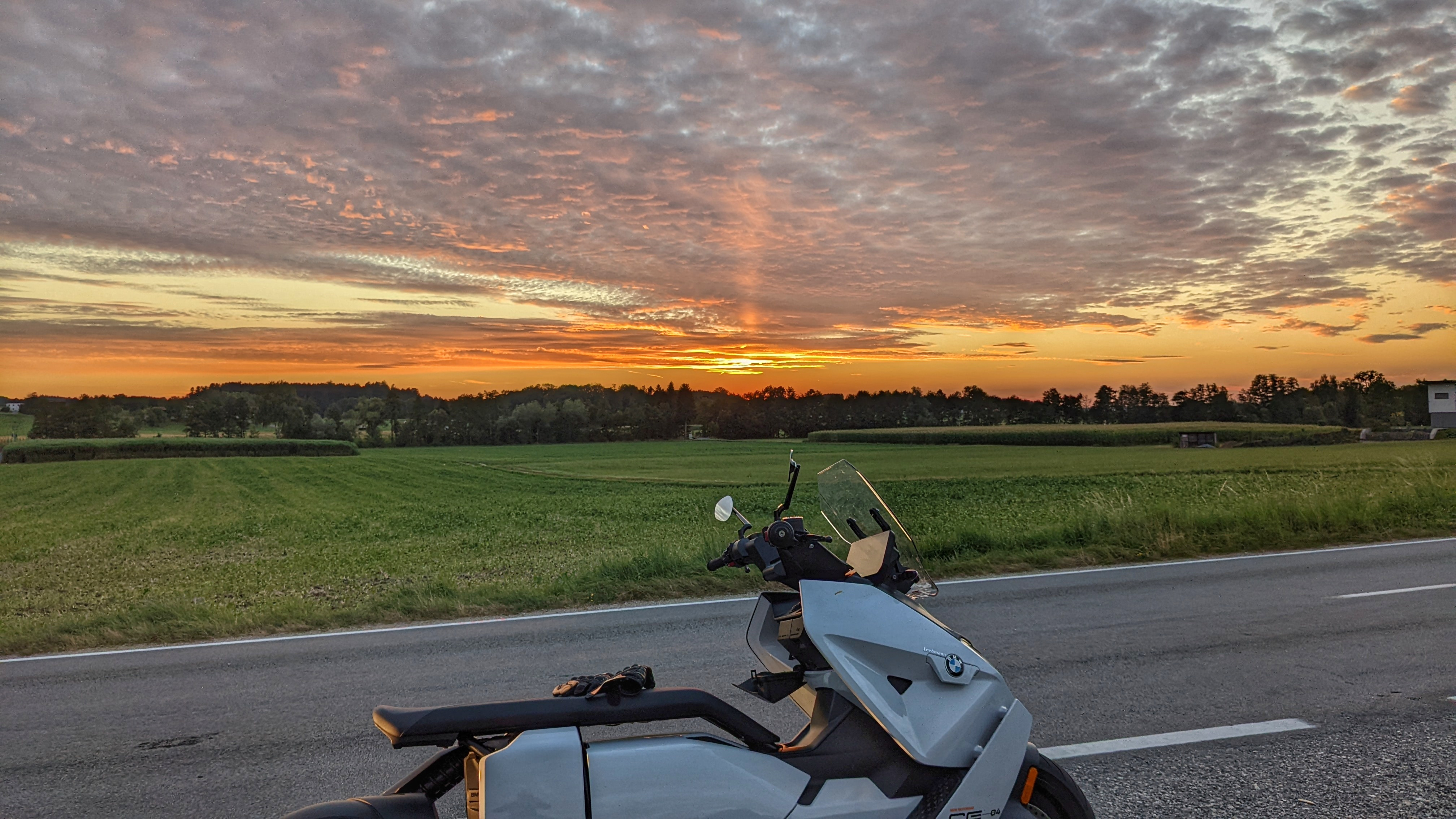 Trockene Abendrunde, nachdem es uns heute bei einer grösseren Erledigungsfahrt zu zweit am CE 04 bis auf die Haut durchnässt hat, also windelweichgespült.