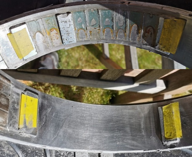 I have now taken the rust off 38 magnets, 5 remain on the rim, 1 snapped, 2 chipped, 2 demagnetised.