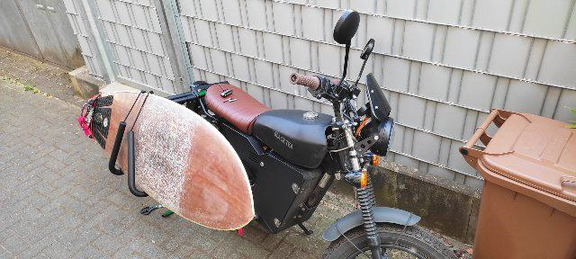 Das geht alles. Das machen die ganzen Surfer auf den Inseln in Asien auch so. Da hat gefühlt jedes zweite Moped oder Roller am Wasser ein Surfboardhalter.