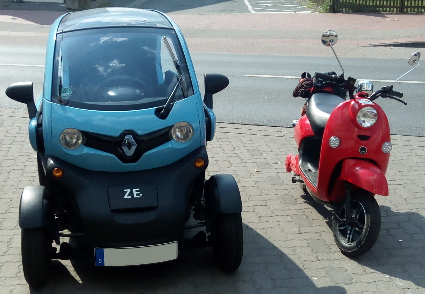 Auf dem Rückweg von Hannover sah ich diesen wunderschönen Renault Twizy am Straßenrand stehen. Die schnelle Version (nicht der 45er), aber noch ohne Seitenscheiben. Für den täglichen Arbeitsweg von 2mal 10,5 km war mir die Akku Miete einfach zu teuer, denn die betrug 60 €/Monat bei maximal 3500 km pro Jahr. Zu der Zeit verfuhr ich nicht mal so viel Benzin im Monat und hab mir das Ding aus dem Kopf geschlagen.