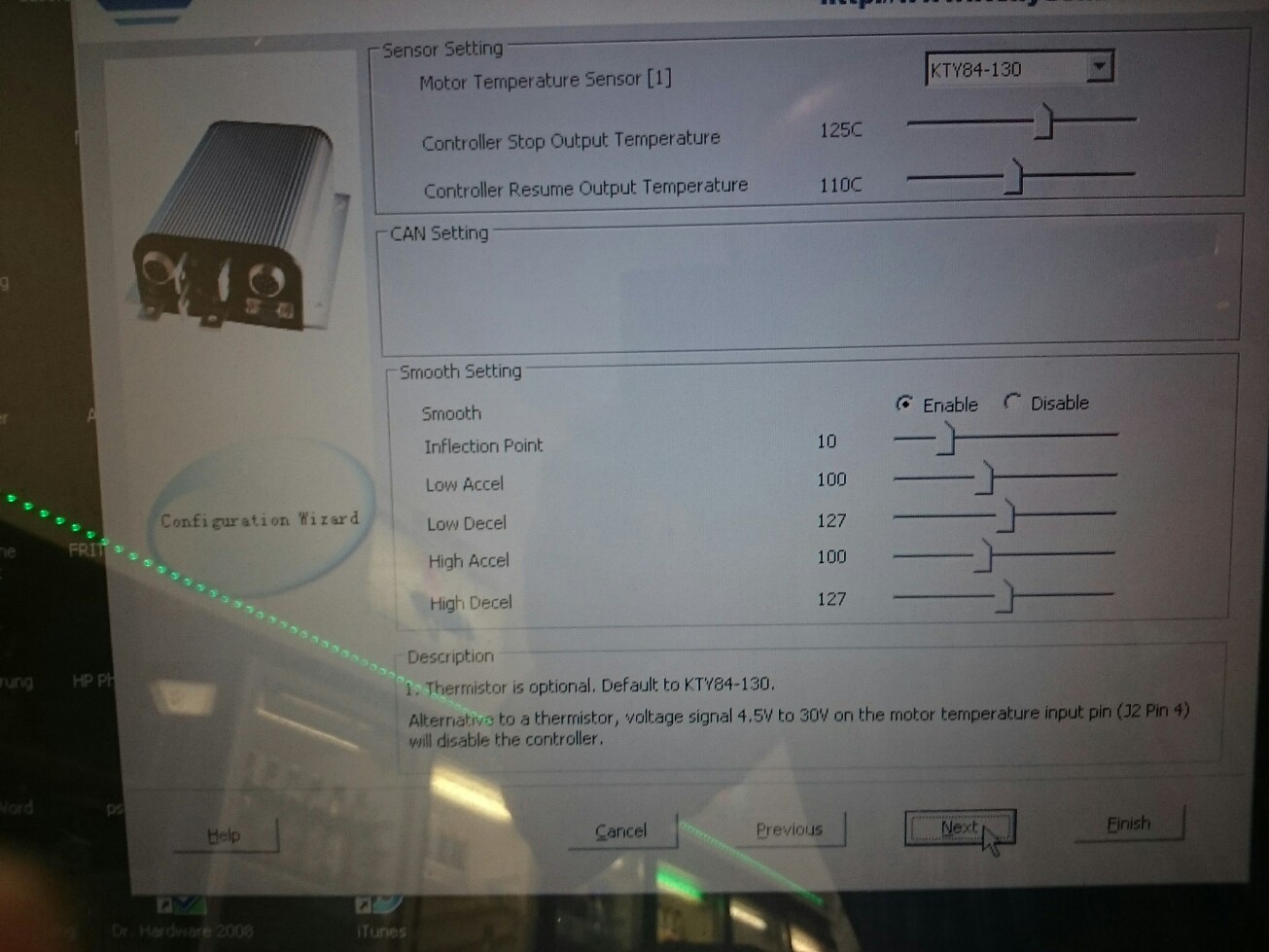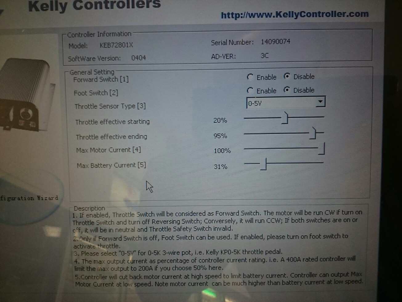 Was mich komisch dünkt und Deine Fahrgriffauflösung unnötig einschränkt ist aber die 25er Einstellung bei "Throttle effective starting" - da musst Du den Fahrgriff schon ein Menge aufdrehen bevor der Controller reagiert. Bei mir tut das alles bei 20% problemlos, ohne dass jemals die Kiste schon im Leerlauf versucht, loszurollen. Das passiert zumindest bei meinen Fahrgriffen erst unterhalb ca. 18%.