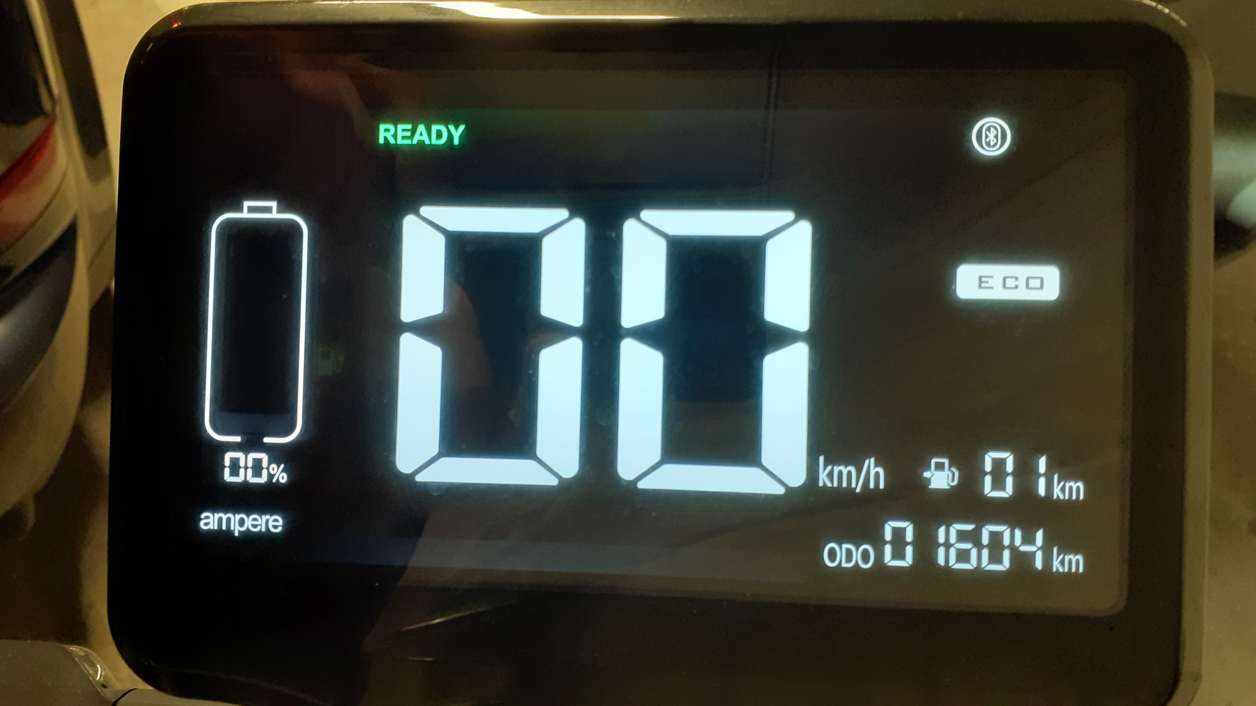 Wollte den Akku nicht zu tief entladen, weshalb ich den Roller dann mit 1604 km abgestellt habe. Das sind gut 4-5 km nach 0% gewesen...