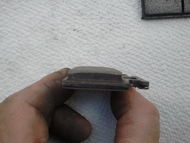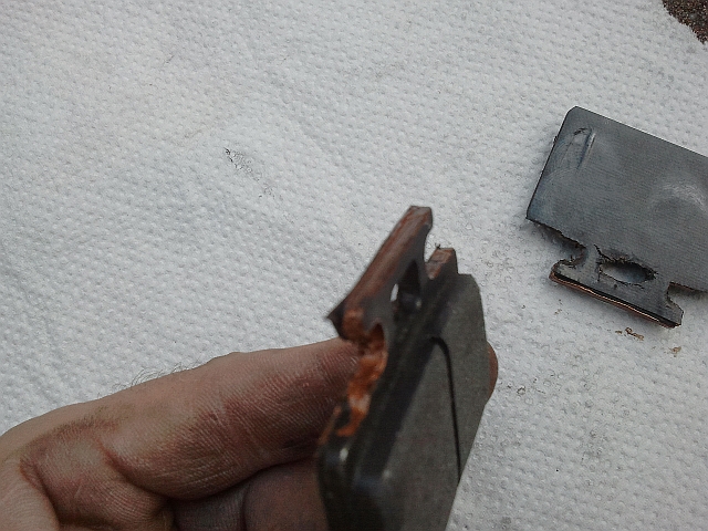 Wie man auf dem Bild sehen kann, schaut selbst bei den UNU Belägen der Bremskolben etwas vor: Keine Ahnung wie es sein könnte, wenn noch ein paar mm von den Belägen fehlen