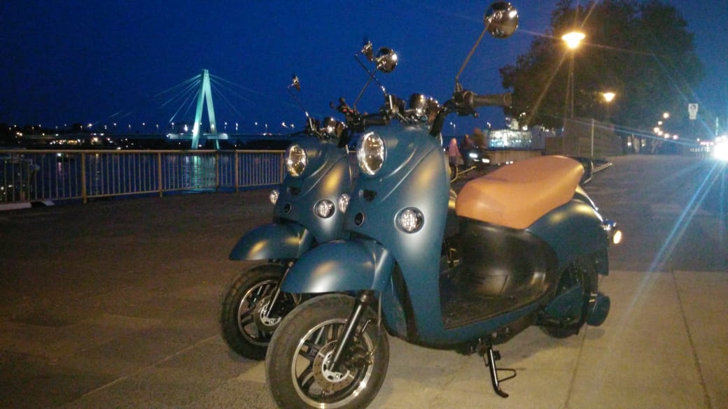 Meiner hat sich im Abendlicht vor einer typischen Frankfurter Großstadtkulisse schön gemacht. Bei unseren Erkundungsfahrten lerne ich Ecken ganz in der Nähe kennen, wo ich noch nie gewesen war.