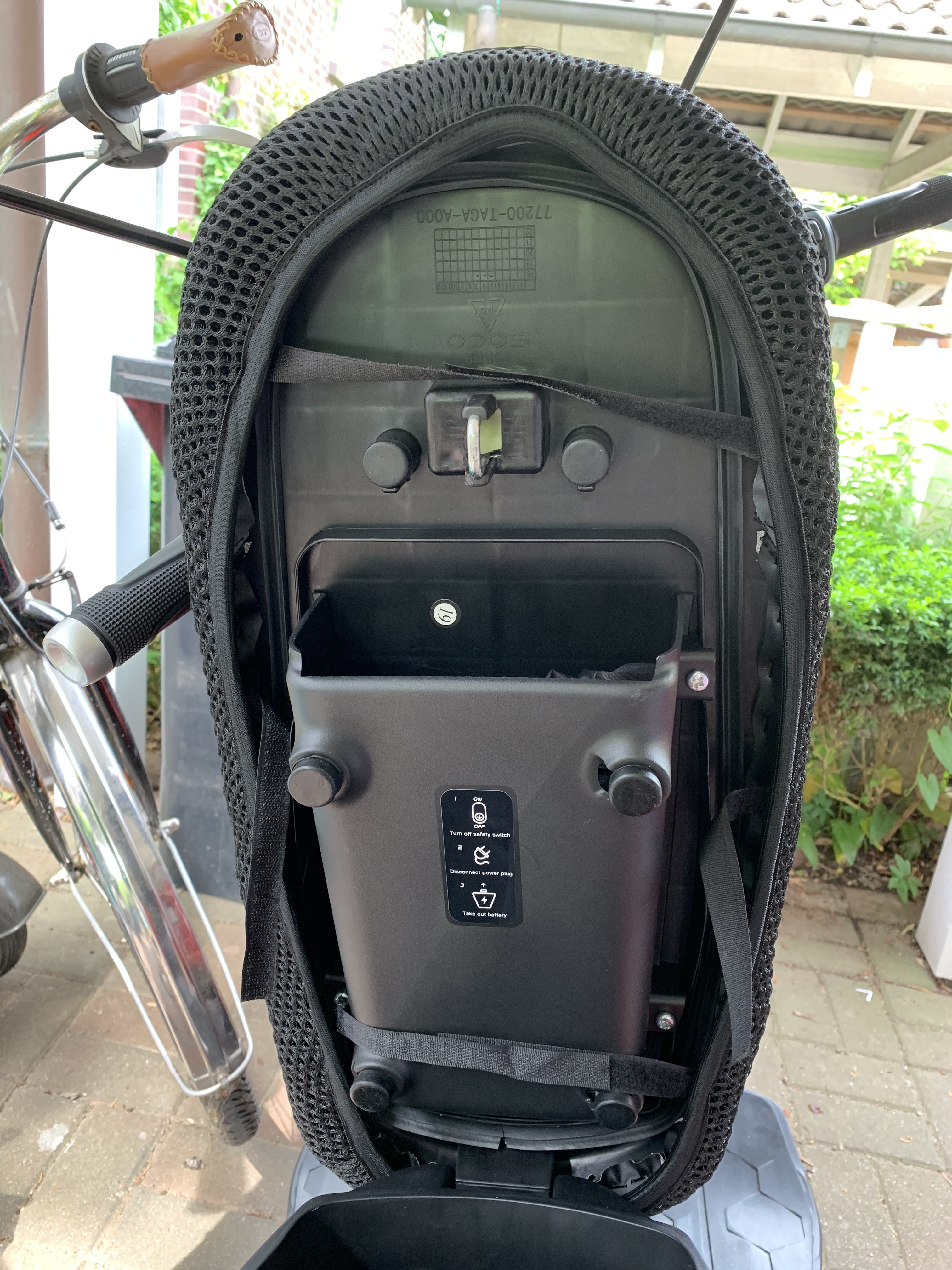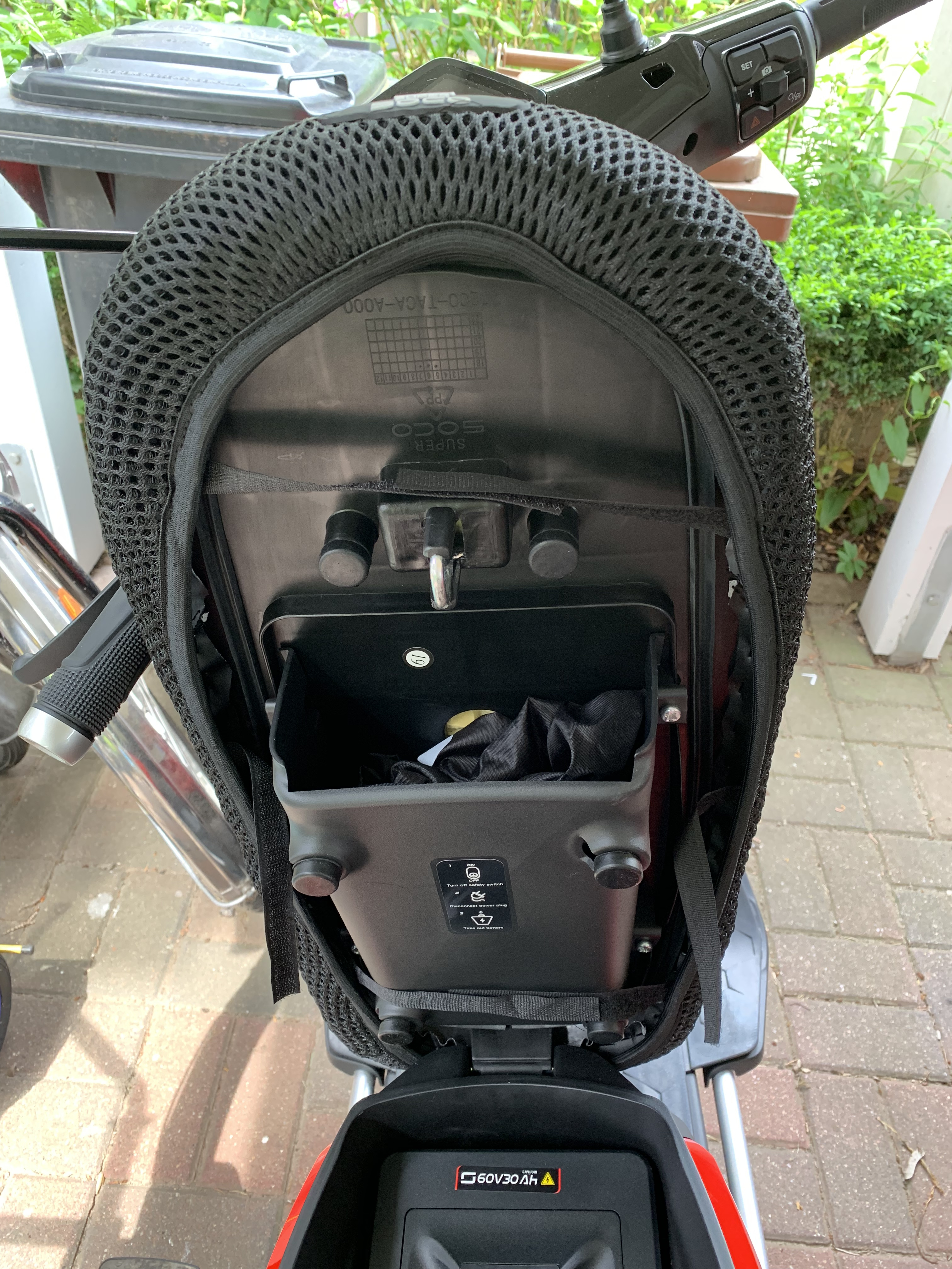 Der Preis ist doch top, aber wie bereits berichtet: „Der Sitzbezug, orginal von Super Soco, ist bequem, aber suboptimal zu installieren, da sich zwei der Klettverschlüsse zum Festziehen unterhalb des Sitzes nicht schließen lassen, da sonst der Sitz nicht mehr zu geht. Trotzdem sitzt der Bezug fest und ich möchte ihn nicht missen. Kein nasser Po bei Regen und keine heiße Ofenplatte bei Sonne.“