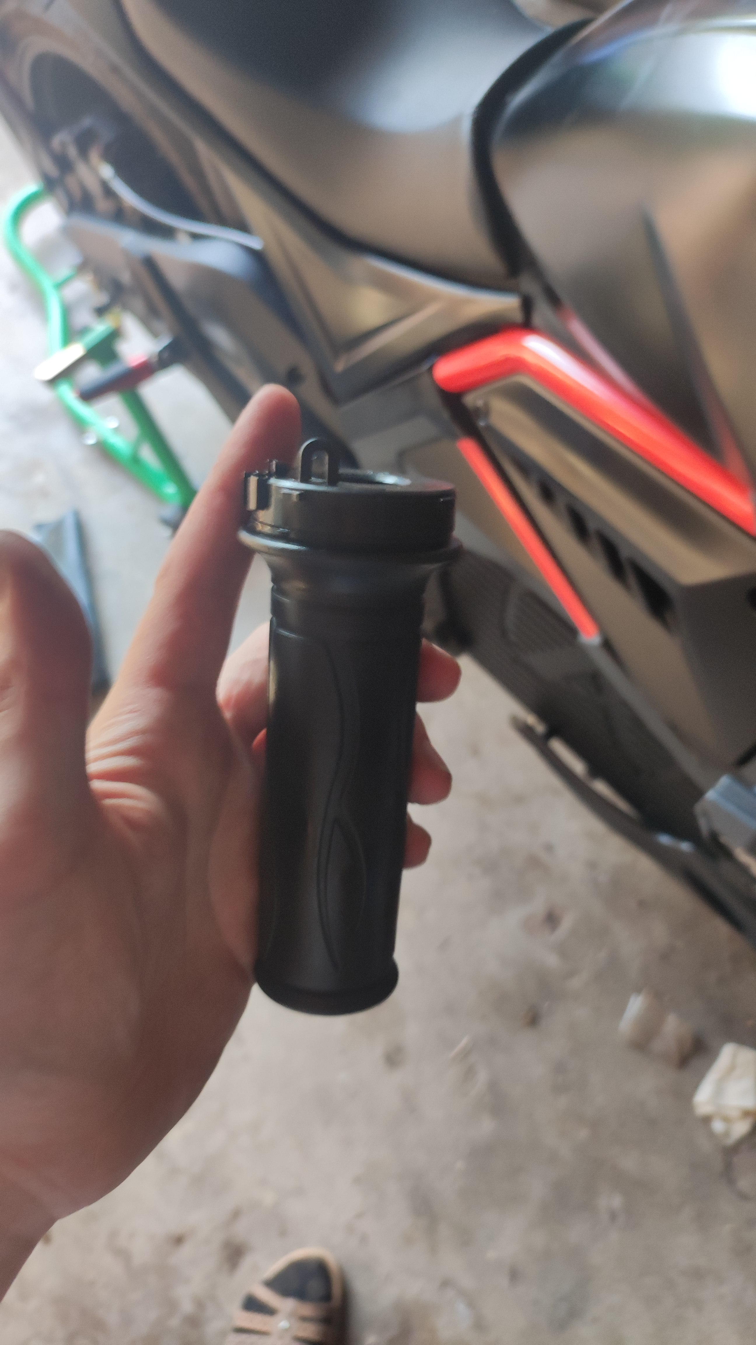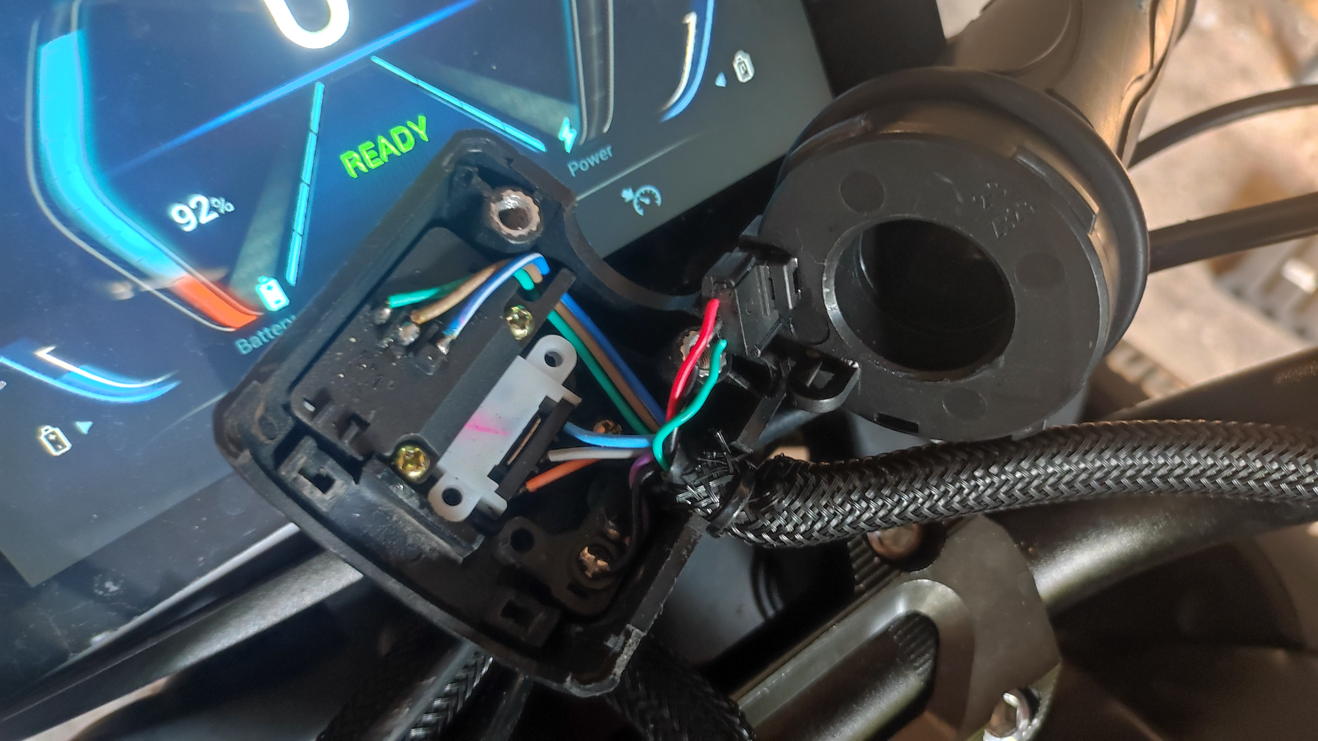 Hallo Annika, ich hatte mir ja bei der Montage der Heizgriffe die Gasrohrhülse zerstört und musste die Hülse tauschen. Dabei habe ich das Foto hier gemacht: Die Hülse fehlt bereits auf dem Foto und mit der Feder ist normalerweise ein schwarzer Ring mit einem Schleifkontakt verbunden, den man dann dreht zum Gas geben. Vielleicht ist dort Feuchtigkeit rein gekommen und man kann etwas mit einem Kontaktspray machen, was man zwischen Gummi und festem Teil rein sprüht. Zumindest übergangsweise.