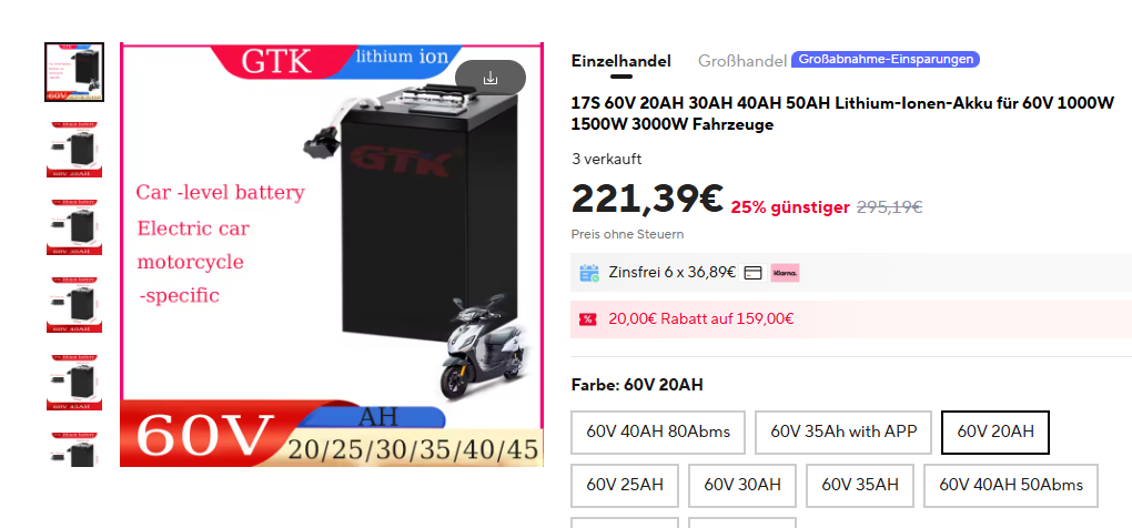 Hatte ich natürlich nicht erwähnt, mein Roller aus 2017 hat ein 60V System und wird mit 3000 Watt angegeben. Da ich 140kg wiege fahre ich quasi ständig zu Zweit und es geht hier ordentlich auf und ab. Daher macht ein 17S Akku schon Sinn.