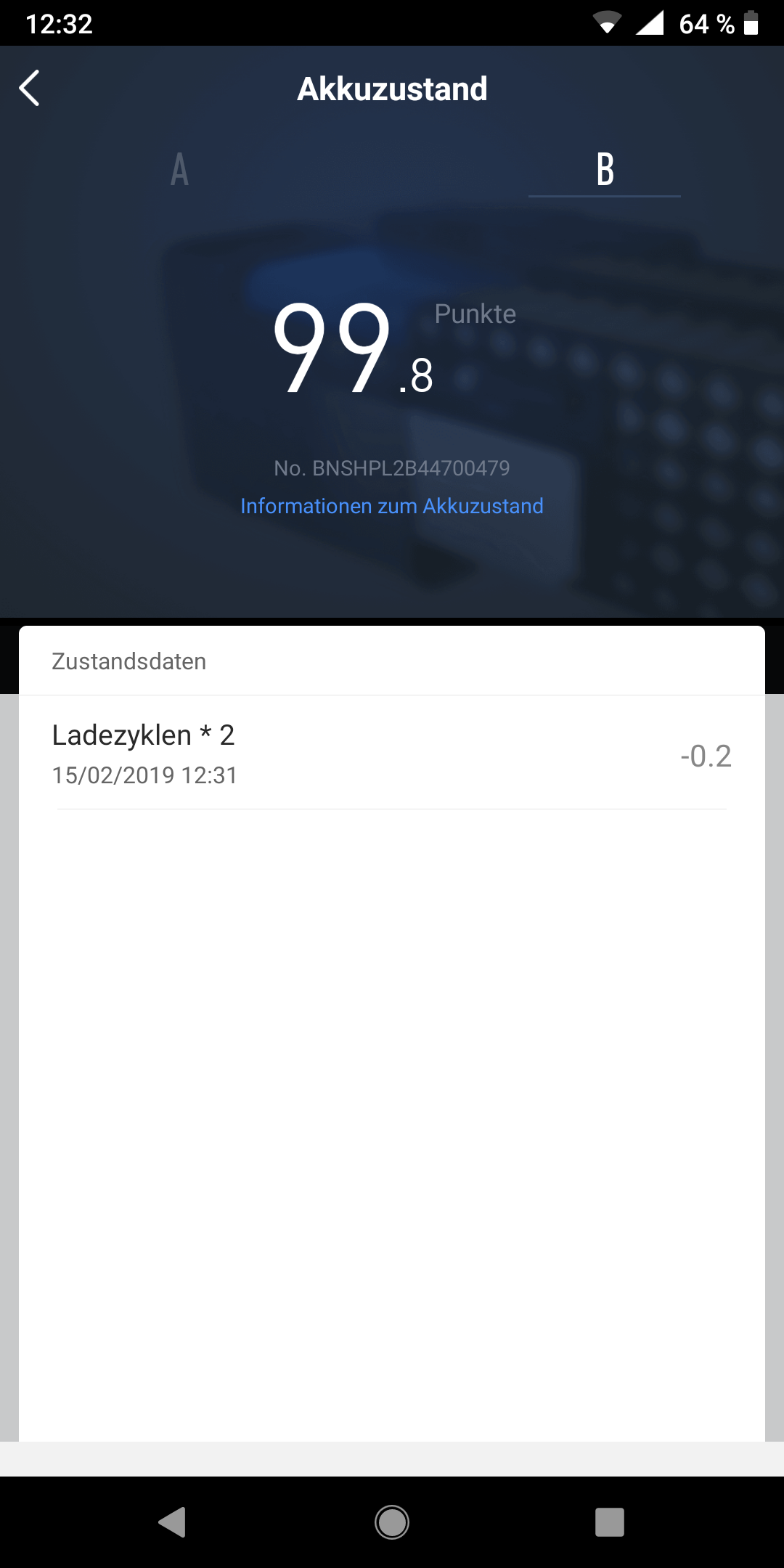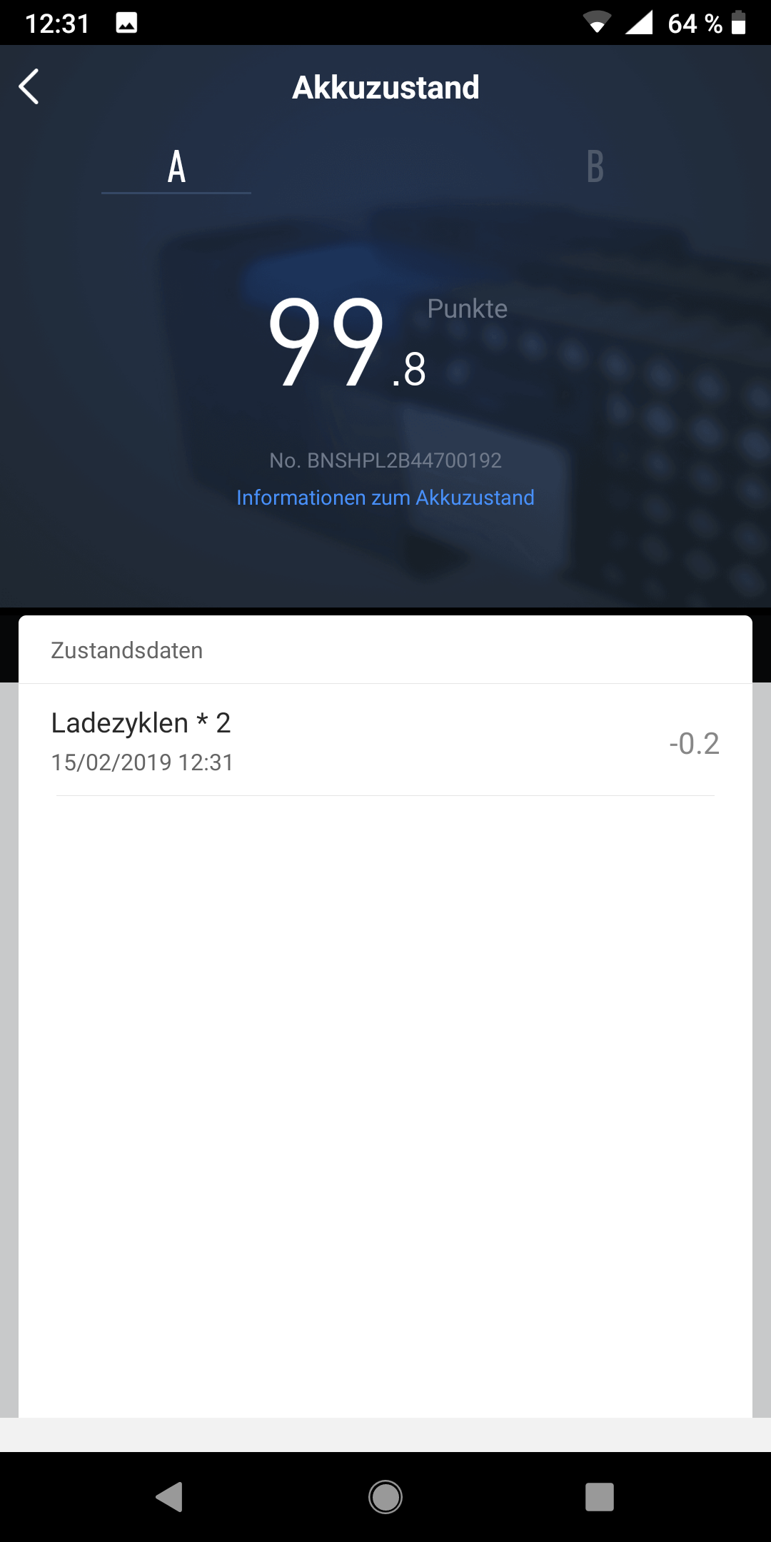 „A“ bezieht sich auf Akku A (unter dem Durchstieg), „B“ bezieht sich auf Akku B (unter der Sitzbank)