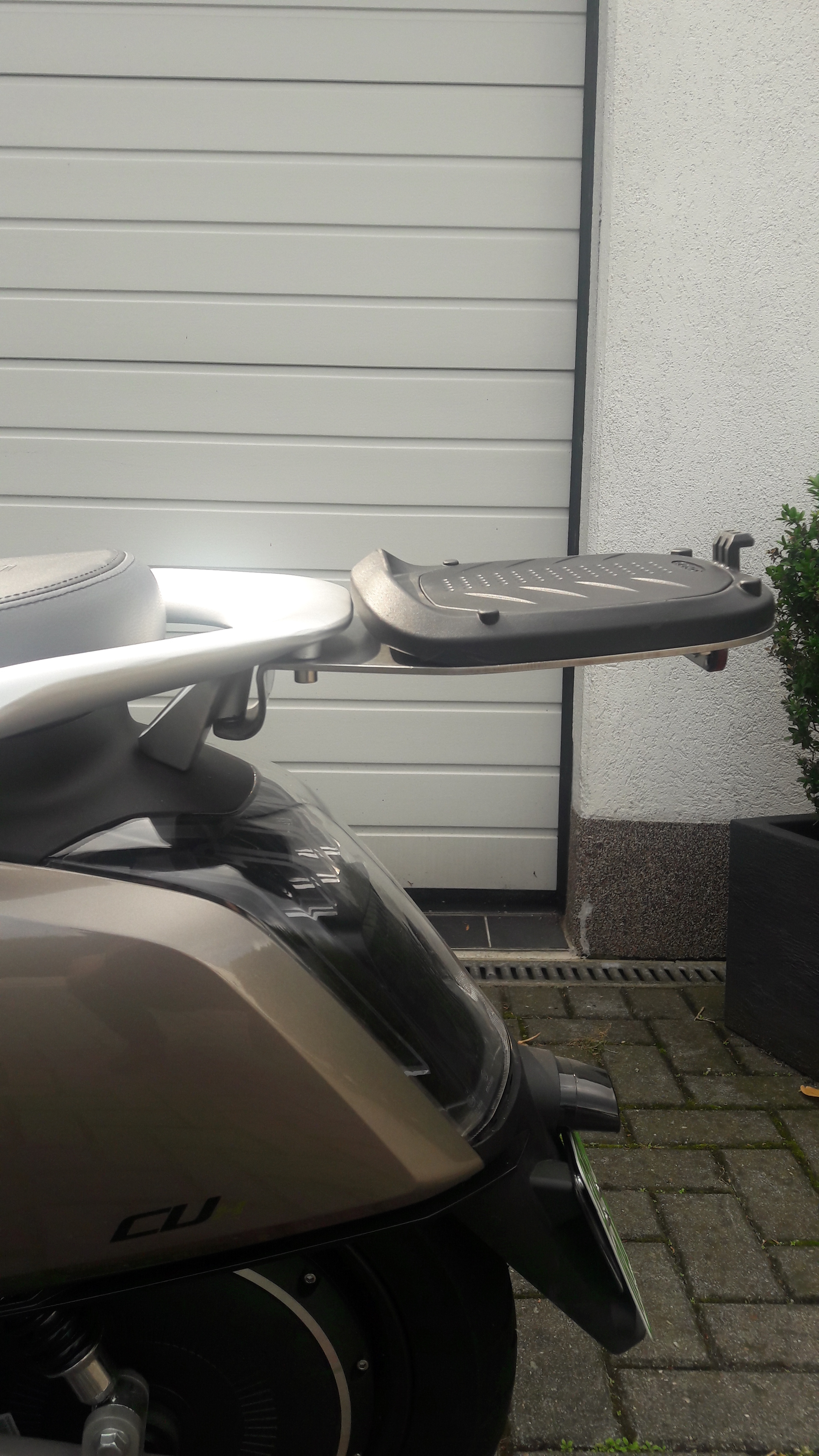 Danke für den Hinweis. Das Top case steht ähnlich wie bei dem Zubehörgriff nach hinten raus.Die Platte ist ein 4mm Edelstahlblech und dürfte somit lange halten. Bin schon mit 10 kg in der Box gefahren.