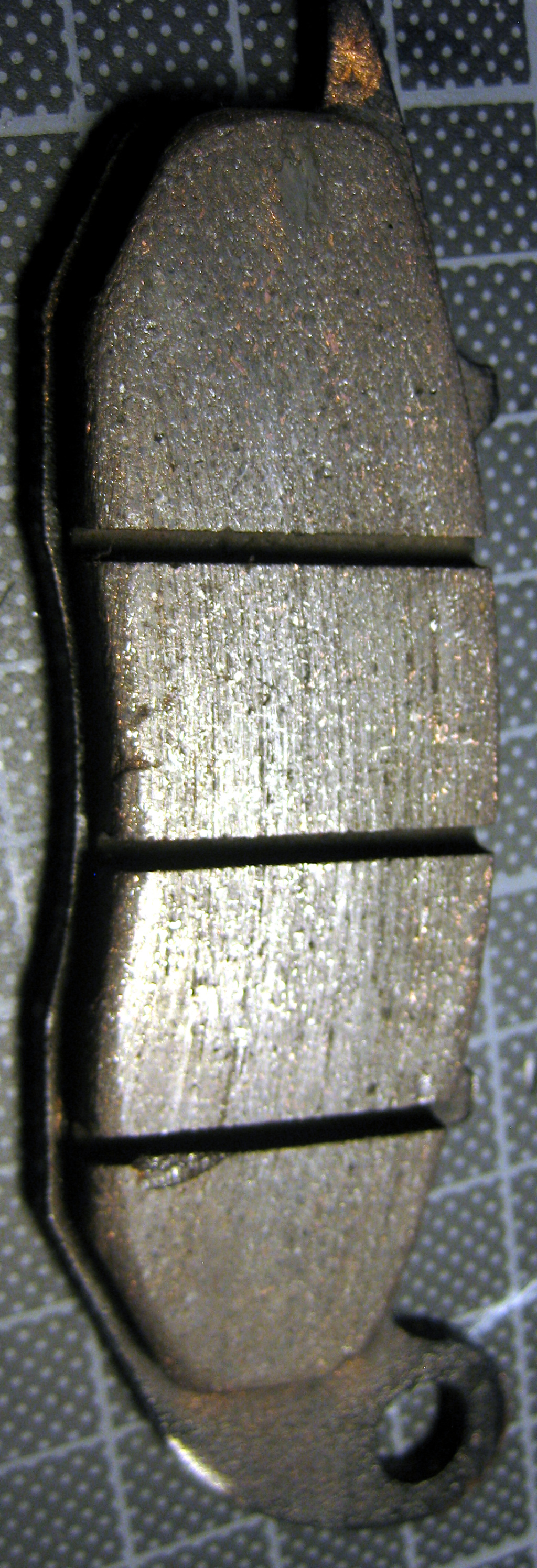 Die sind nun neu abgeschmiert. (Man kann die Halterung und den Sattel seitlich auseinander ziehen.) Somit kann der Sattel nun der Scheibe besser folgen.