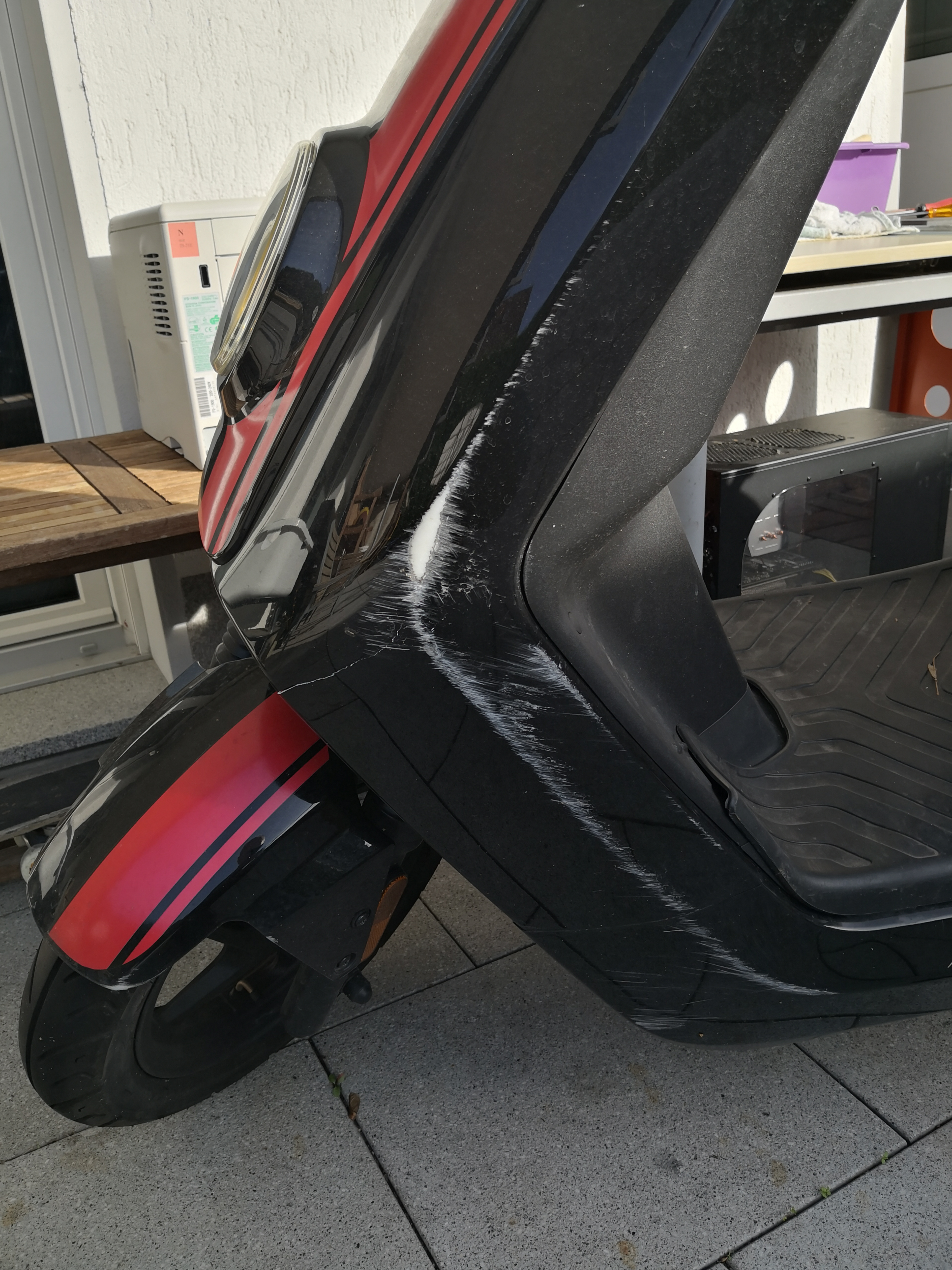 Ruhrpilot hat geschrieben: Mi 23. Okt 2019, 10:22 Farbkombi schwarz/rot. Aber ich habe nicht vor, die Verkleidung zu erneuern. Die Kratzer betrachte ich einfach als Patina, die sich im Laufe eines Rollerlebens so ansammelt.