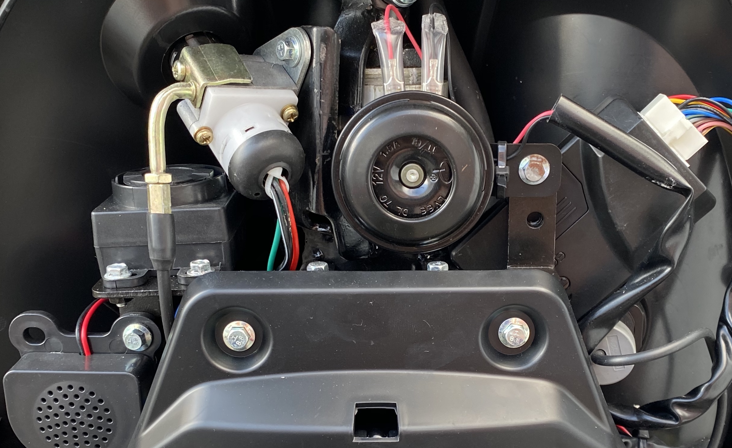 Die markierten Teile fehlen bei mir... Was ist davon was? Bzw was davon könnte Einfluss auf die Blinker haben? Wie gesagt, ansonsten funktioniert der Roller 1a.