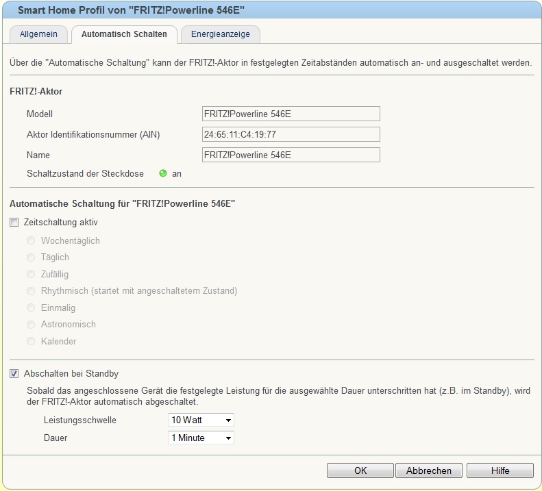 Ich nehme die Fritz Powerline 546E her (dann braucht man keine Fritzbox). Hier geht auch mit automatisch schalten, Zeitschaltuhr, über WWW schalten...@ Peter: Fritzbox 7390 und das Gerät hier : FRITZ!DECT 200, kann man dann komfortabel über ein Webinterface steuern, inkl, Verbrauchsmessung, Zeitsteuerung.... ganz nett kann ich nur sagen... bei Interesse bitte PN, dann gibts mehr Infos...