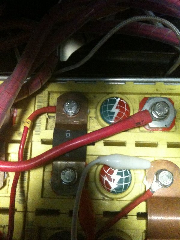 Da gibt es noch etwas, was mir nicht gefällt: da sind die bekannten Zellverbinder, in mehreren Lagen und mit Schrumfschlauch fixiert, und rechts von Zelle 7 sehe ich einen "blanken" - ist der einzeln oder auch in mehreren Lagen? Auf alle Fälle sieht das nach Pfusch aus.