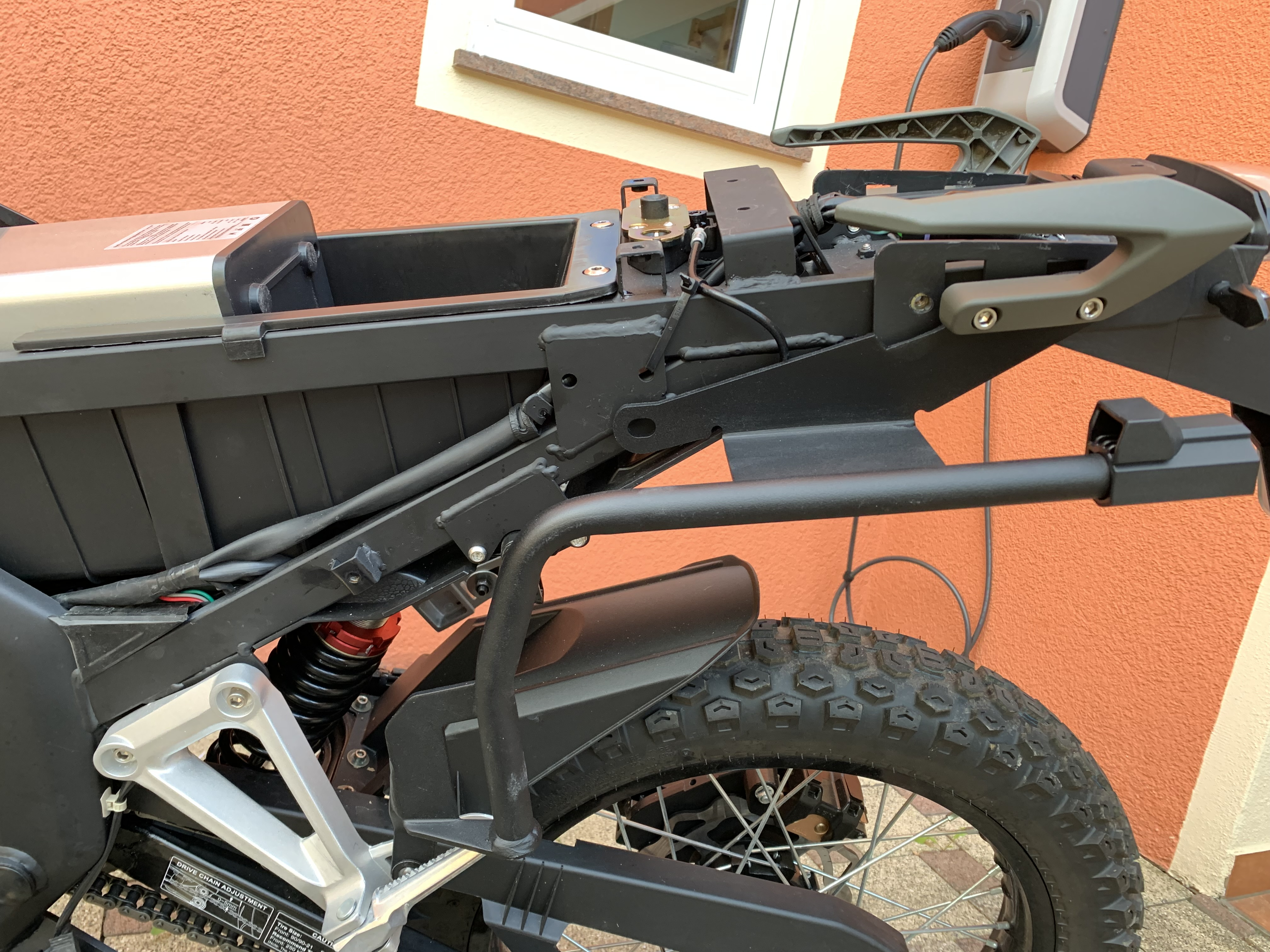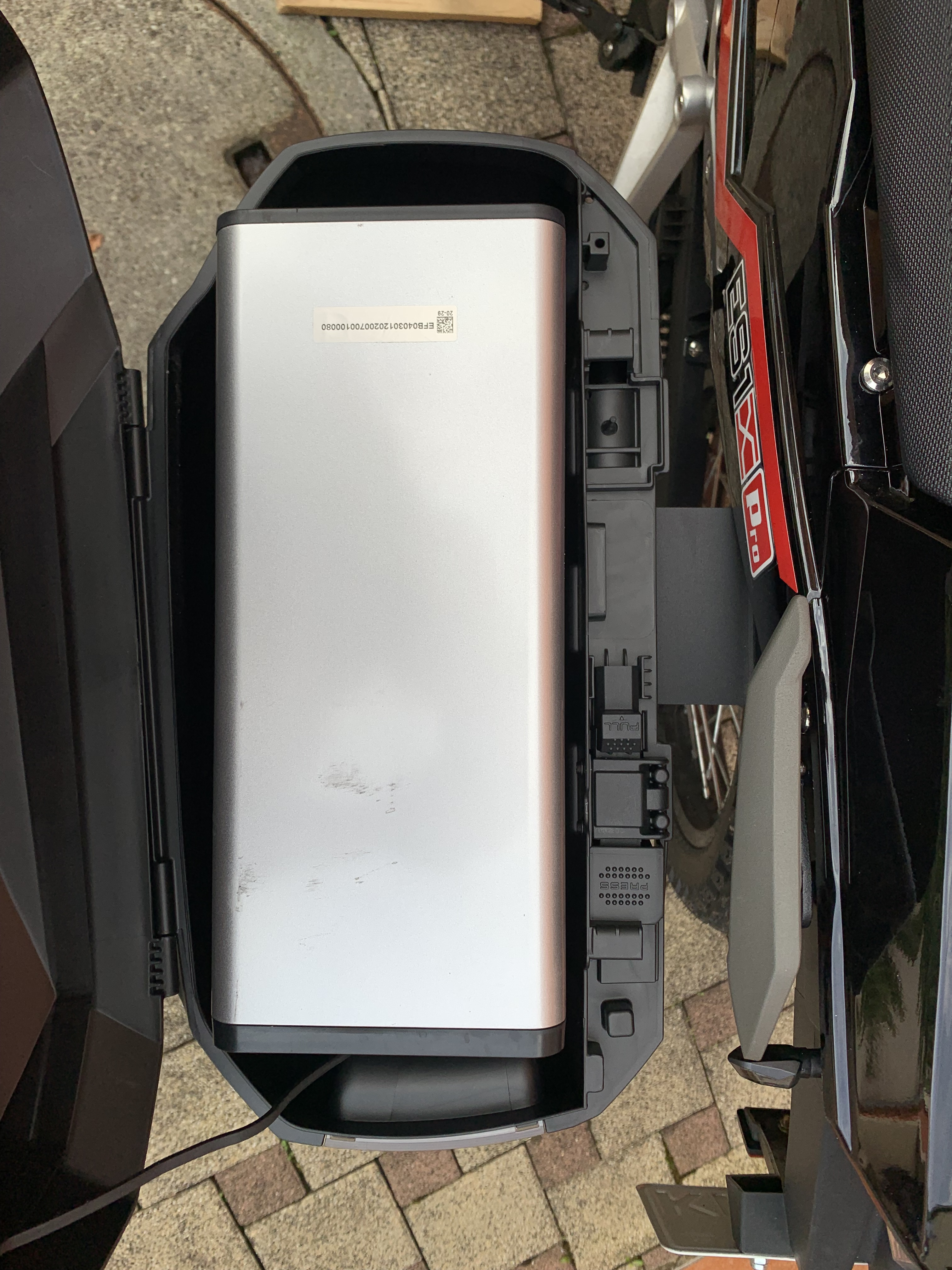 Ich habe mir 2Verlängerungkabel machen lassen und kann somit die 2 Ersatzakkus in den Gepäcktaschen benutzen ohne sie vorne einbauen zu müssen.