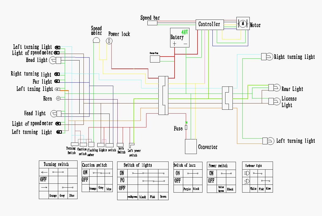 )an den Controler gelegt und ans Bremslicht gelegt. Die + 48V gehen über das Zündschloss dann über den im Plan nicht eingezeichneten Seitenständer zum Converter und Controller.Der arbeitet jetzt invertiert warum auch immer - ist angeschlossen wie bei meinem laufenden Quadix! Vielleicht anderer Schaltertyp obwohl von aussen baugleich! Wie auch immer - bei eingeklappten Seitenständer müssen die +48V durchgeschaltet werden denn sonst wird der DC/DC Wandler nicht mit 48 V versorgt! Also am Controller auch +48V für Fahrbetrieb. Insofern bleibts erst mal bei der Ansage von STW. Wahrscheinlich werde ich es am WE aber nicht schaffen (straffes Program