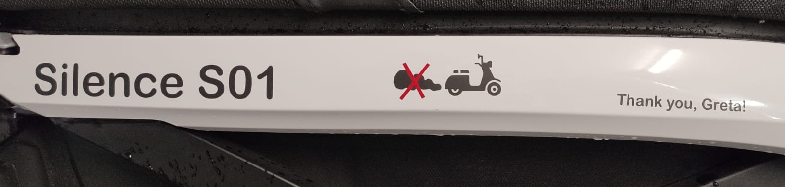 Ich weiß garnicht, warum Silence nicht einfach den Aufkleber ab Werk drauf klebt. Bei den Rollern auf der Webseite ist er ja drauf.