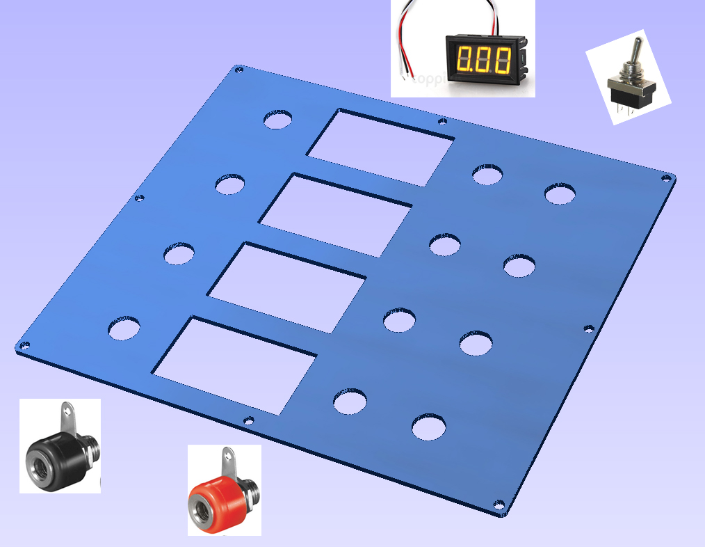 Wenn ich die vier "Ports" erst mal aus dem "Untergrund" hochgeholt habe, kann ich an die Bananenbuchsen auch einen Logger anschließen. Die Panelmeter schalte ich über die Kippschalter.Lt. Angabe sollen die zwar nur einen Eigenverbrauch <20mA haben, aber meinen Hintern von unten beleuchten brauchen sie wirklich nicht. Aber so ein Anschlußterminal ist allemal sinnvoller als dieses China Werkzeugset