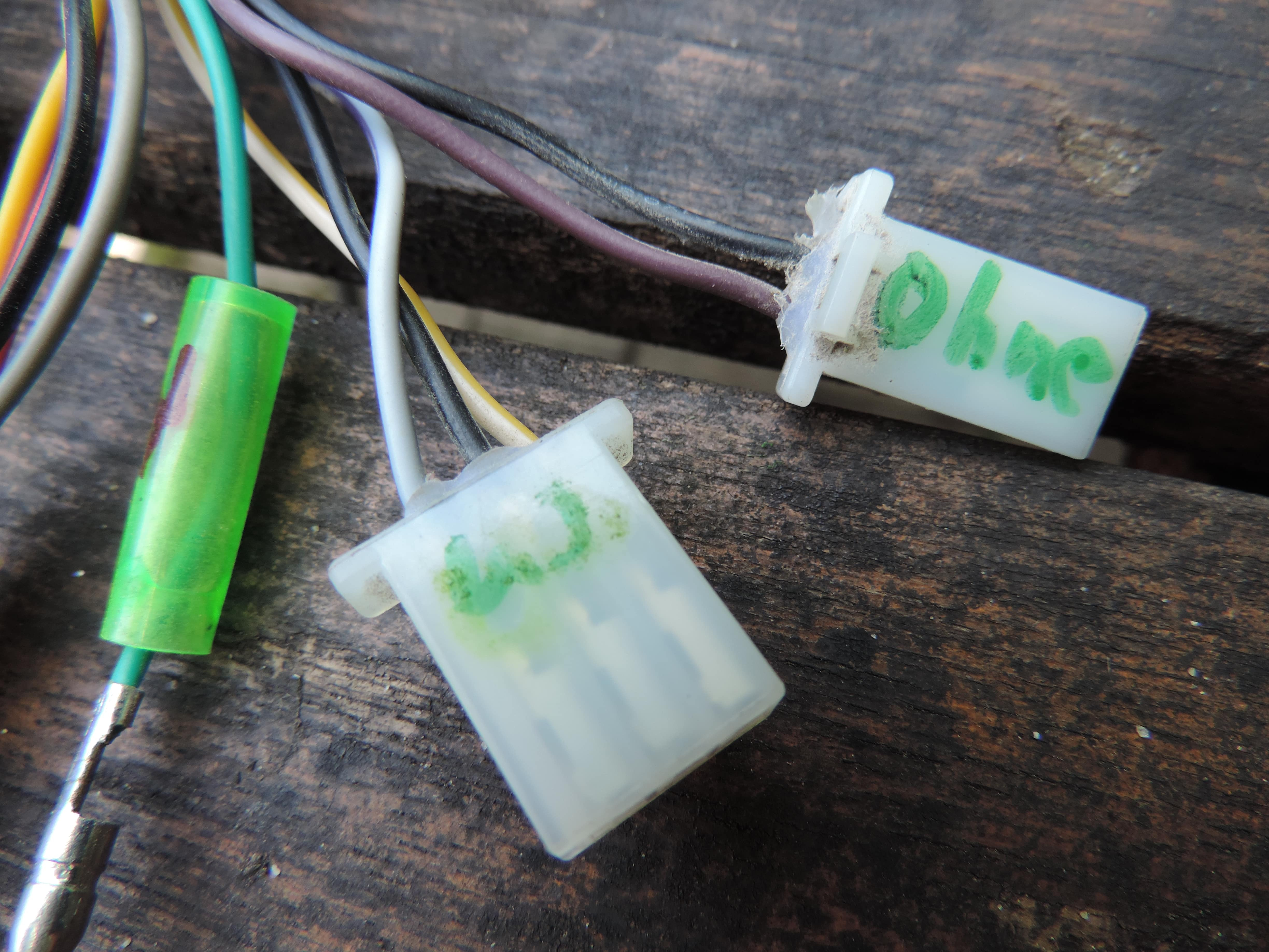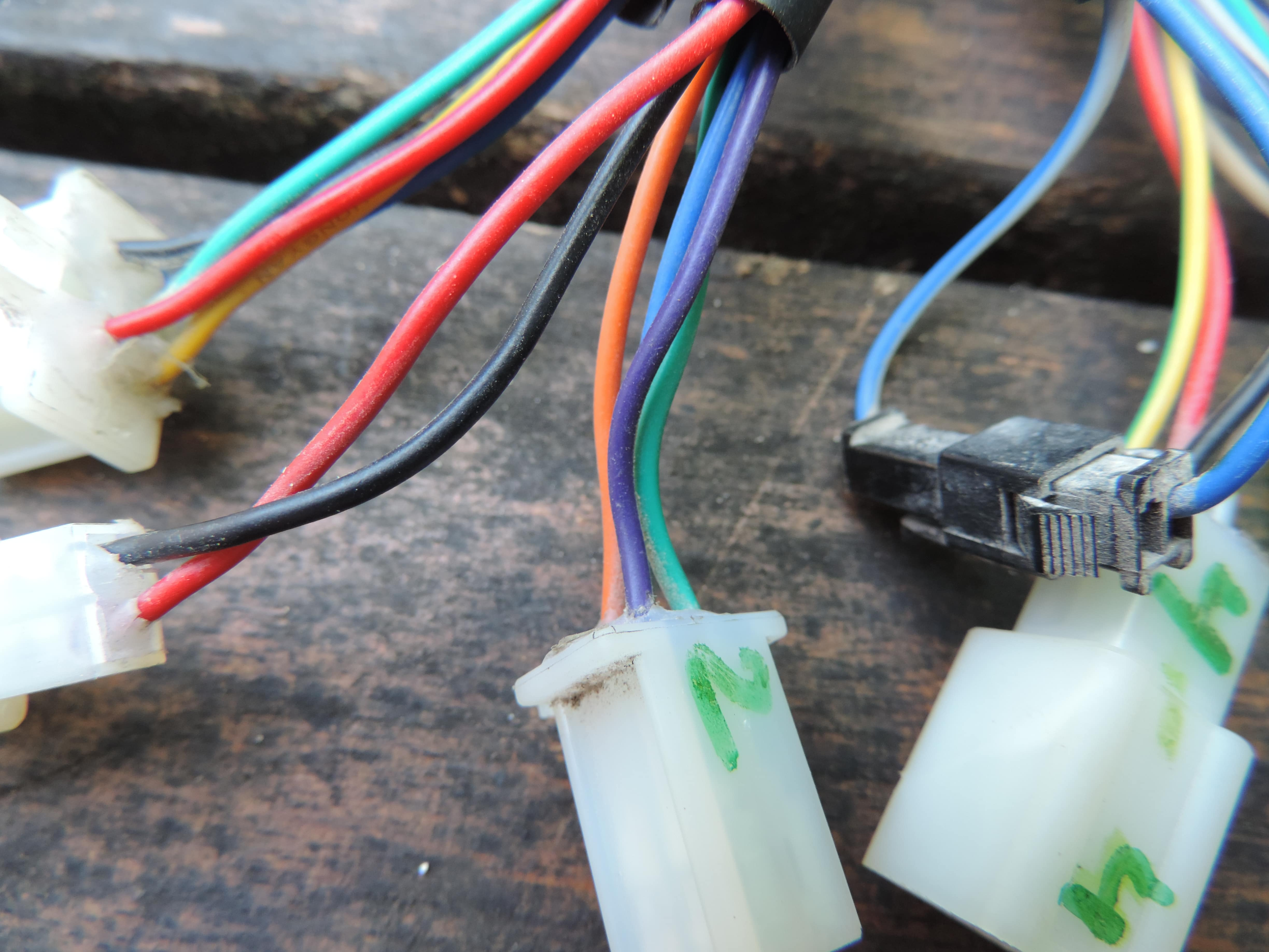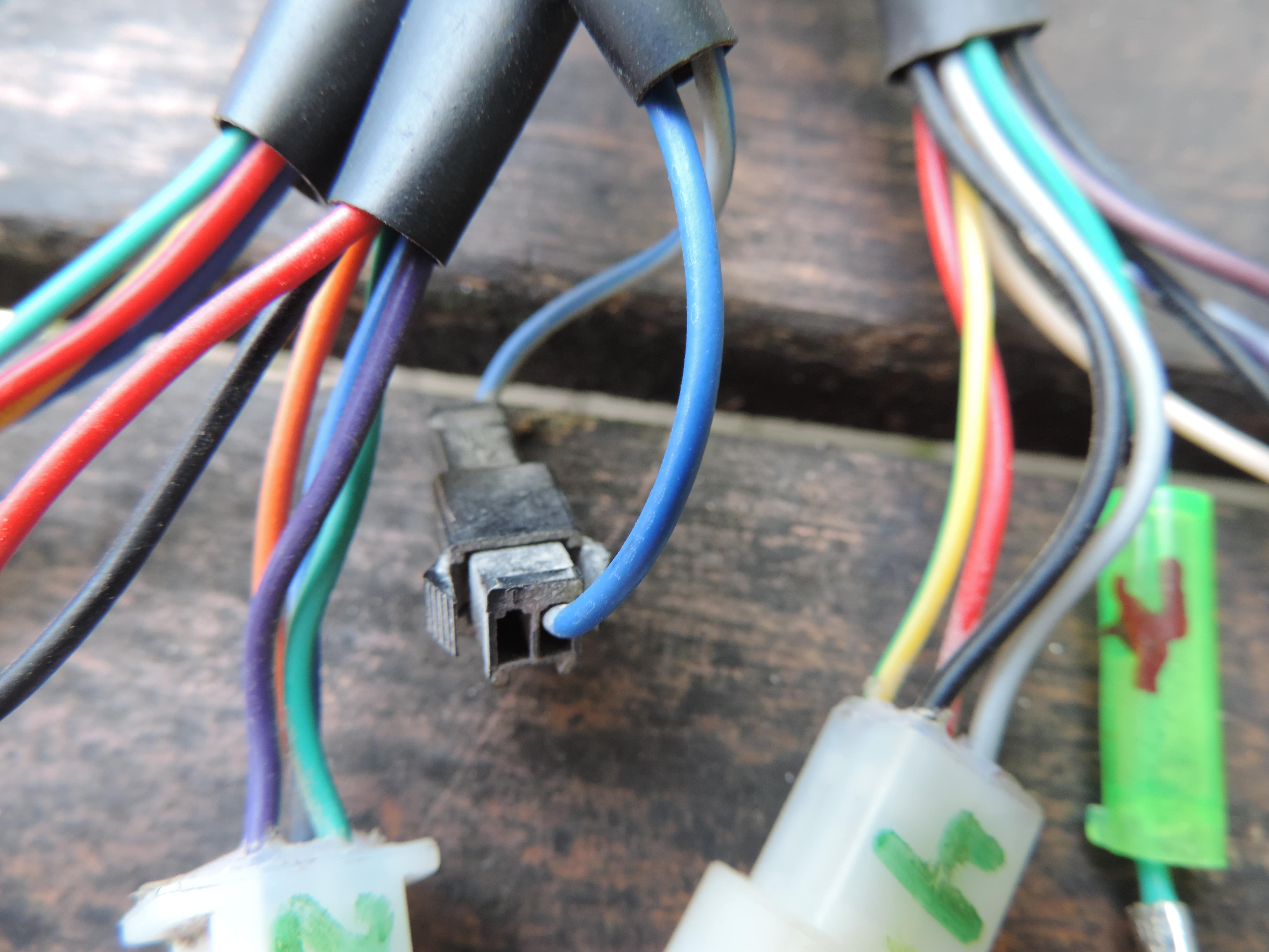 die frage ist was bedeuten die anderen stecker? Wichtige Leitungen sind die Sicherheitskreise der Bremsen und des Seitenständers, ohne die gar nichts laufen wird. wo sind die?