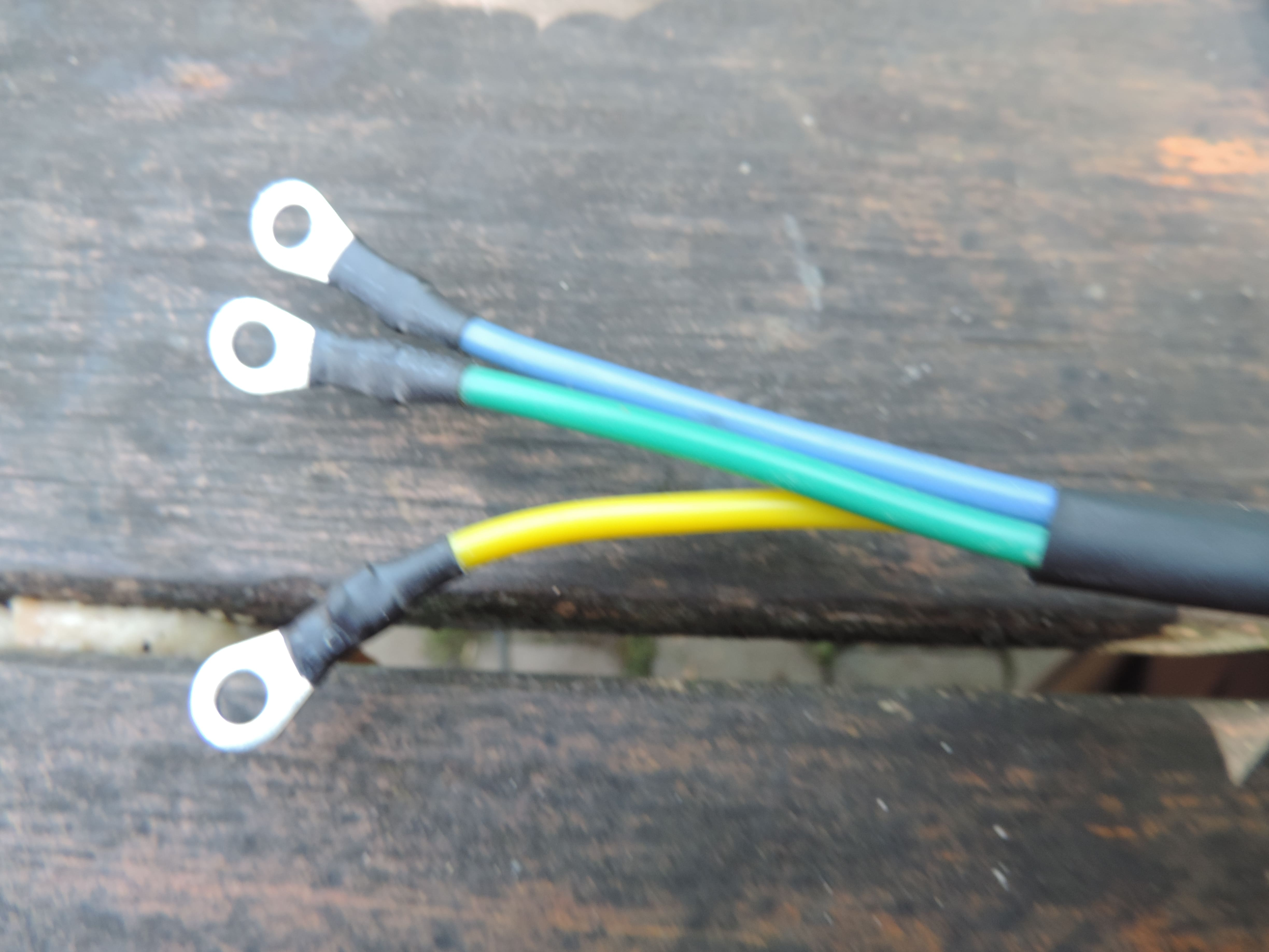 Der dicke gelbe, dicke blaue und der dicke "grüne" jeweils mit Öse, sind für den Motorabgang. (auch über einen Verteilerblock)